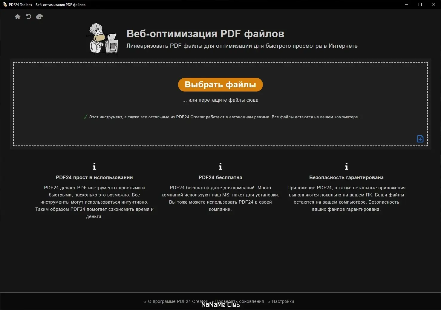 PDF24 Creator предлагает широкий функционал при полной бесплатности. Программа отличается высокой стабильностью, поддерживает массовую обработку документов и интегрируется с системой на уровне принтера. Интерфейс интуитивно понятен, а встроенные мастера помогают выполнять задачи без лишних действий. Однако, как и у любого бесплатного решения, есть ограничения. Некоторые расширенные функции могут быть доступны только в онлайн-версии или требуют подключения к серверам разработчика. Также возможны редкие сбои при обработке очень крупных файлов.