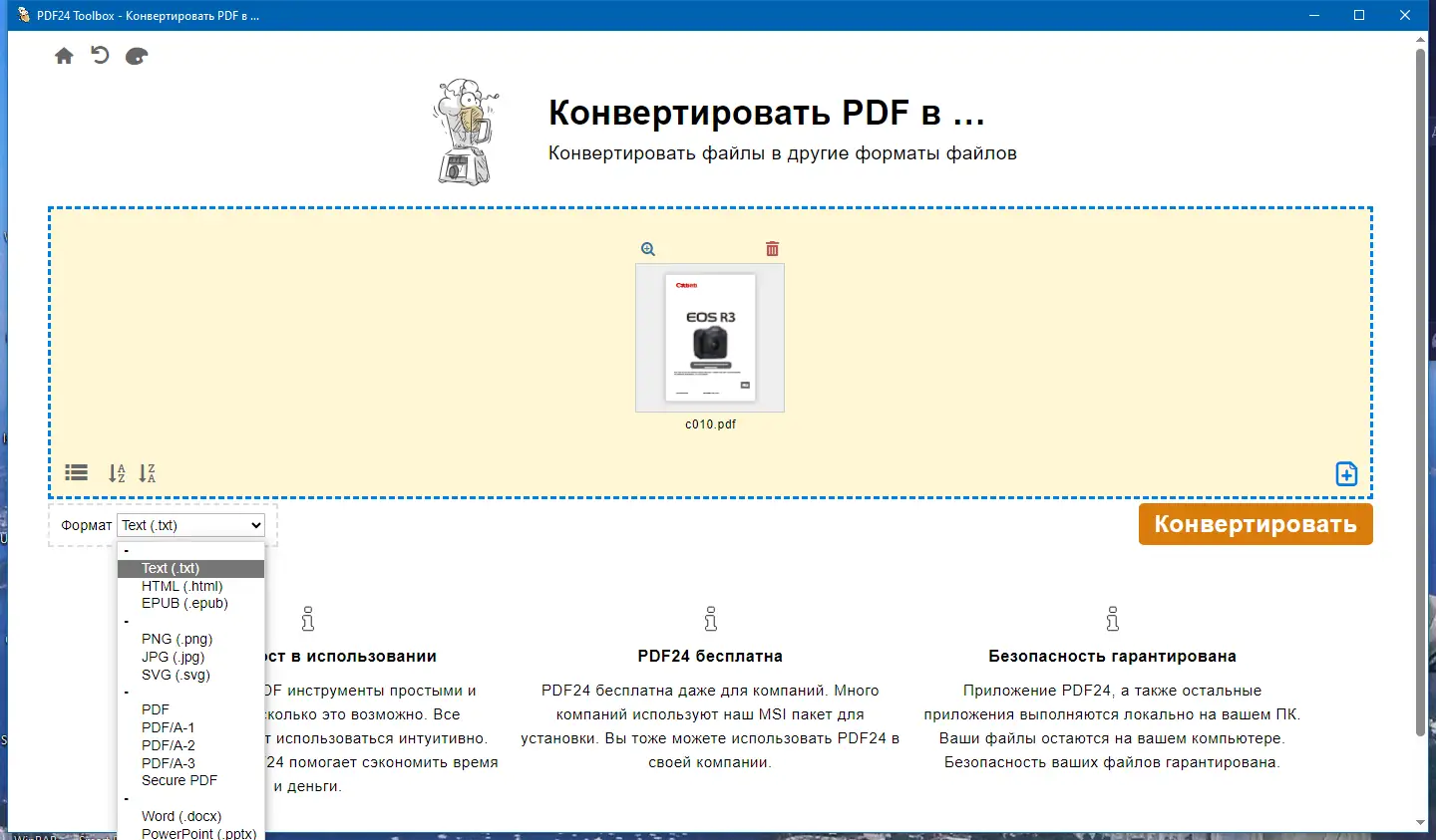 Работа с PDF24 Creator