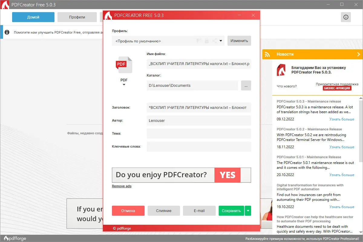 Как пользоваться PDFCreator