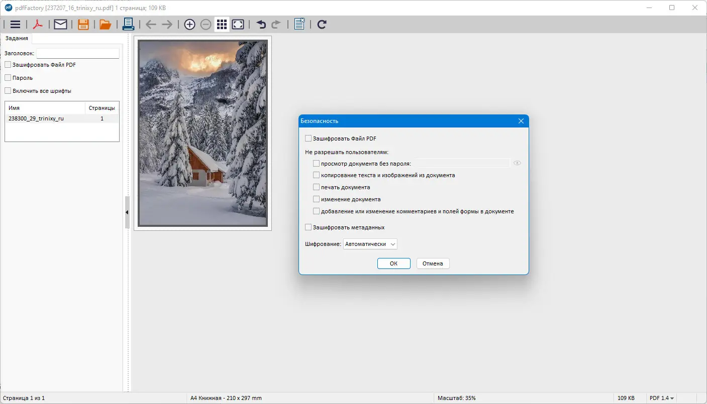 - Поддержка шифрования и запрета редактирования