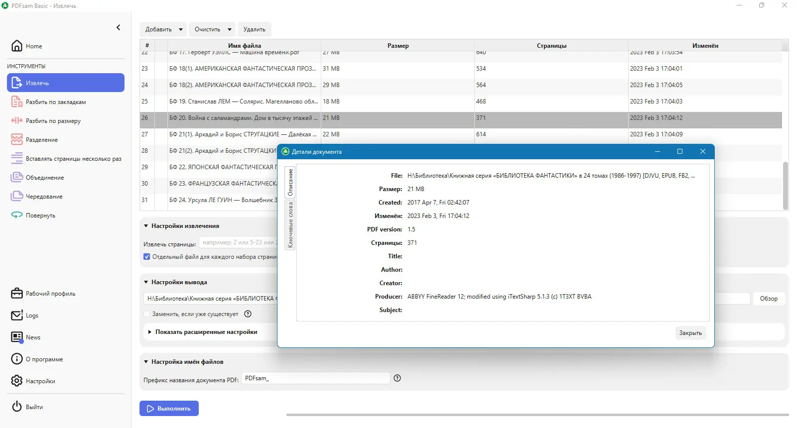 - Позволяет разделять PDF-файлы по заданным параметрам — по страницам, главам или диапазонам.