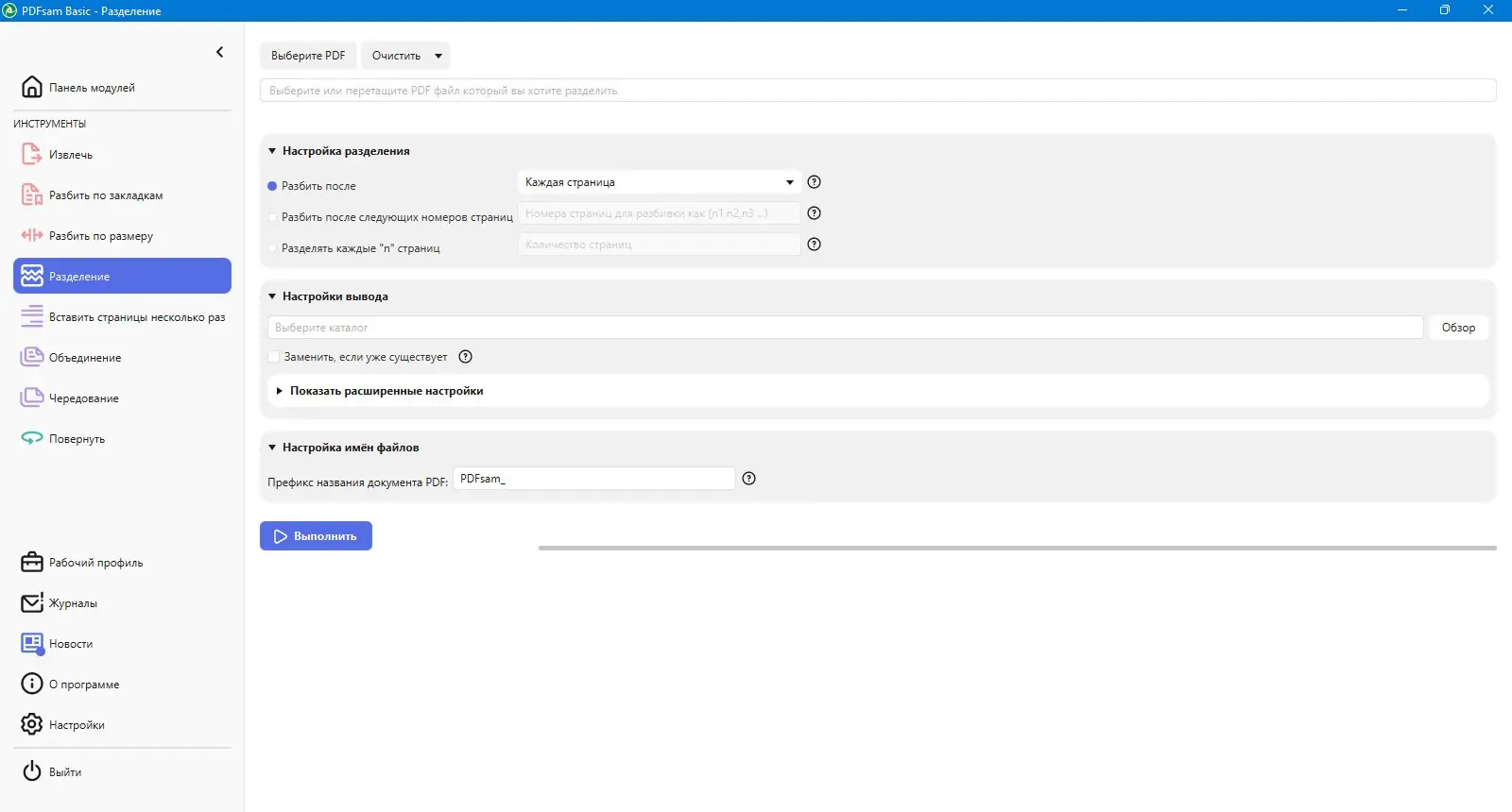 - Разделение PDF файлов на главы, отдельные страницы или по заданному количеству листов