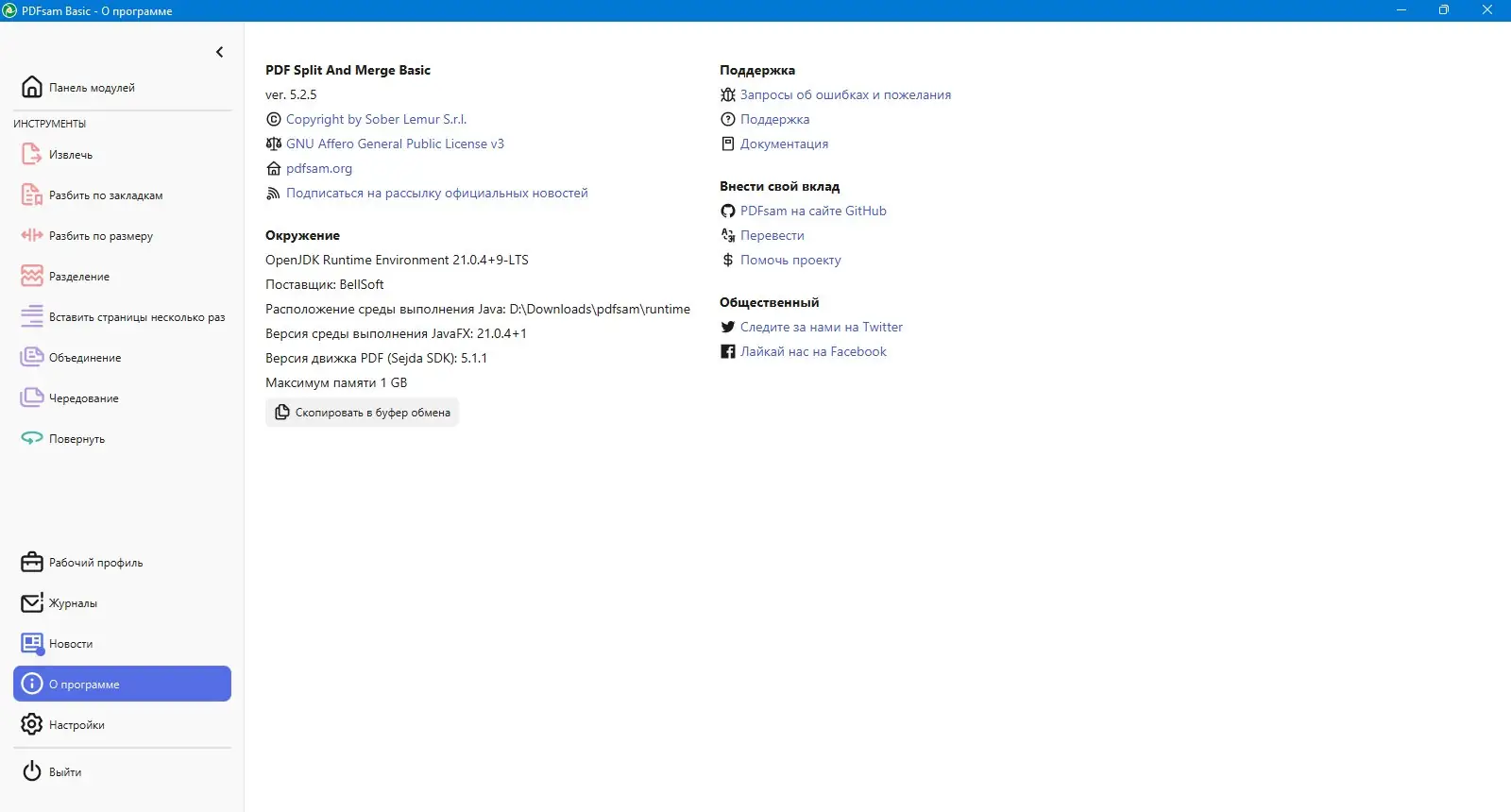 - Наличие портативной версии, запускаемой через pdfsam.bat