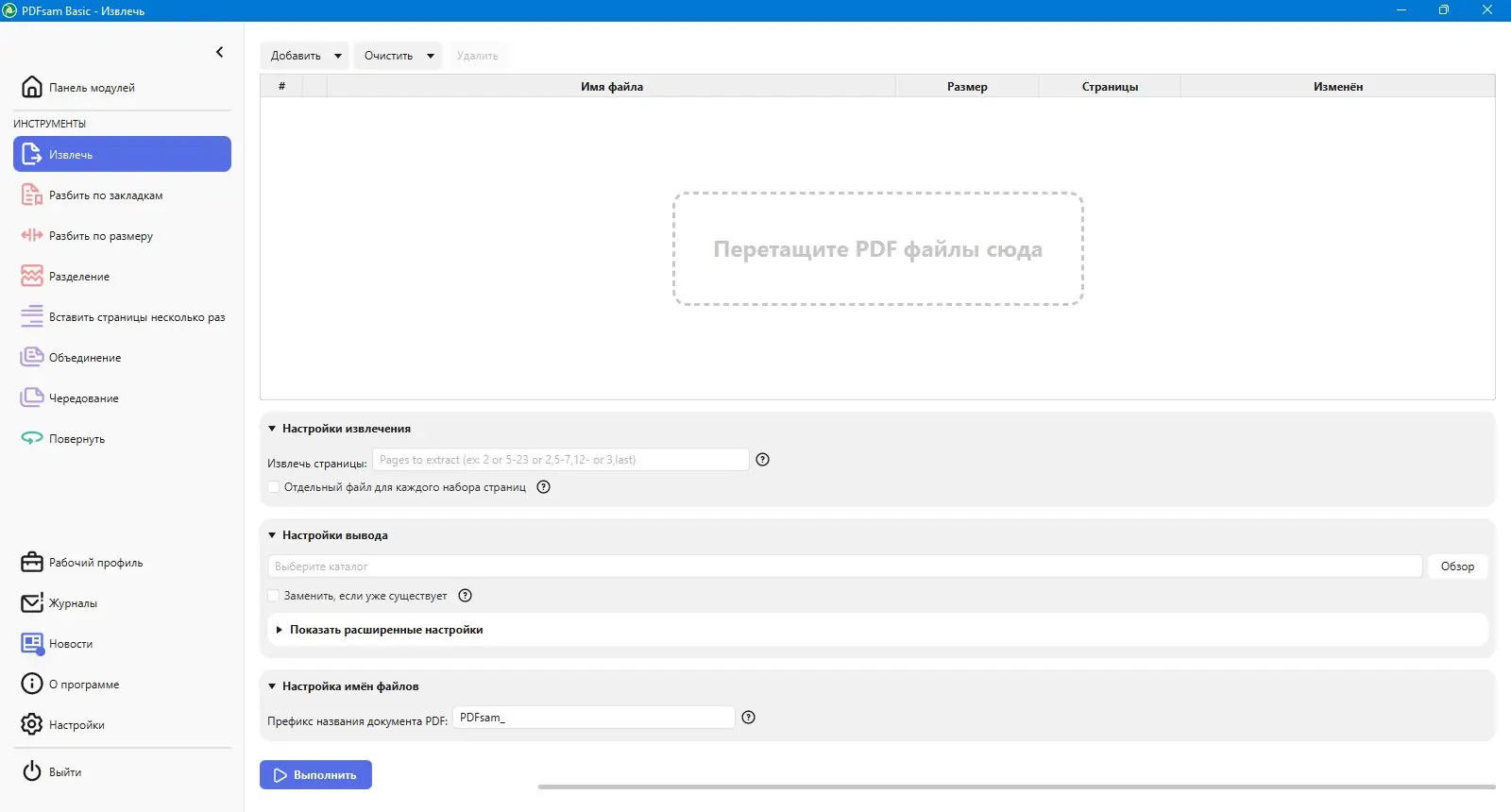 Интерфейс программы организован в виде модулей, каждый из которых отвечает за определённую операцию. Пользователь выбирает нужное действие — например, «Разделить» или «Объединить», затем добавляет файлы через кнопку загрузки или перетаскиванием. После настройки параметров, таких как диапазон страниц или направление чередования, запускается процесс обработки. Результат сохраняется в указанную папку с возможностью выбора имени и формата выходного файла. Поддержка командной строки позволяет автоматизировать рутинные задачи, что особенно полезно в корпоративной среде.