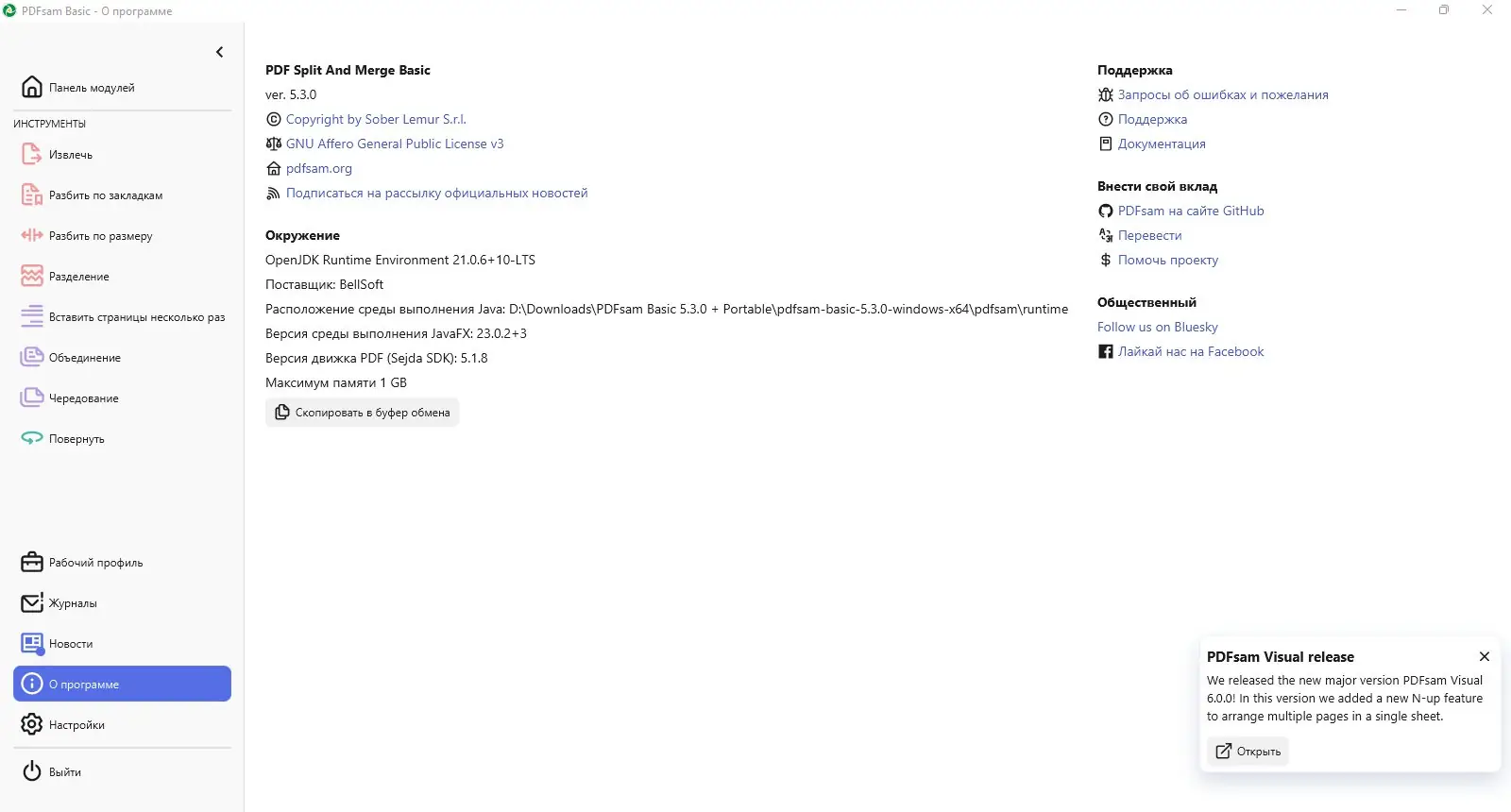 PDFsam сочетает в себе функциональность и простоту, что делает его популярным выбором среди офисных утилит. Программа поддерживает множество операций, необходимых для повседневной работы с документами, и при этом остаётся легковесной и стабильной. Благодаря открытому исходному коду и активному обновлению, она регулярно адаптируется под новые требования.