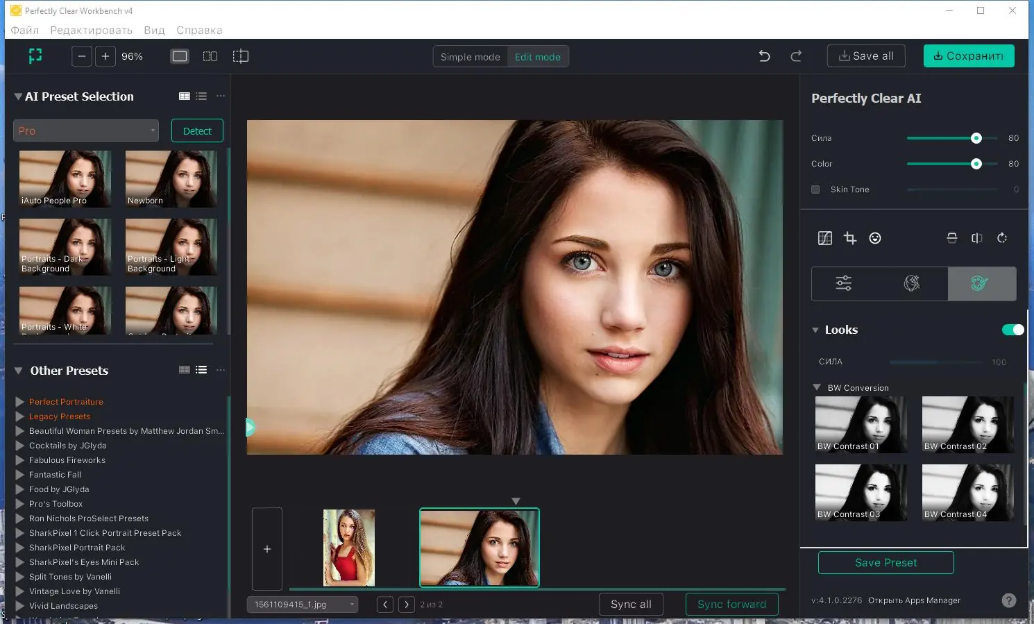 Perfectly Clear сочетает в себе простоту автоматической коррекции и гибкость ручных настроек, делая процесс ретуши максимально эффективным.