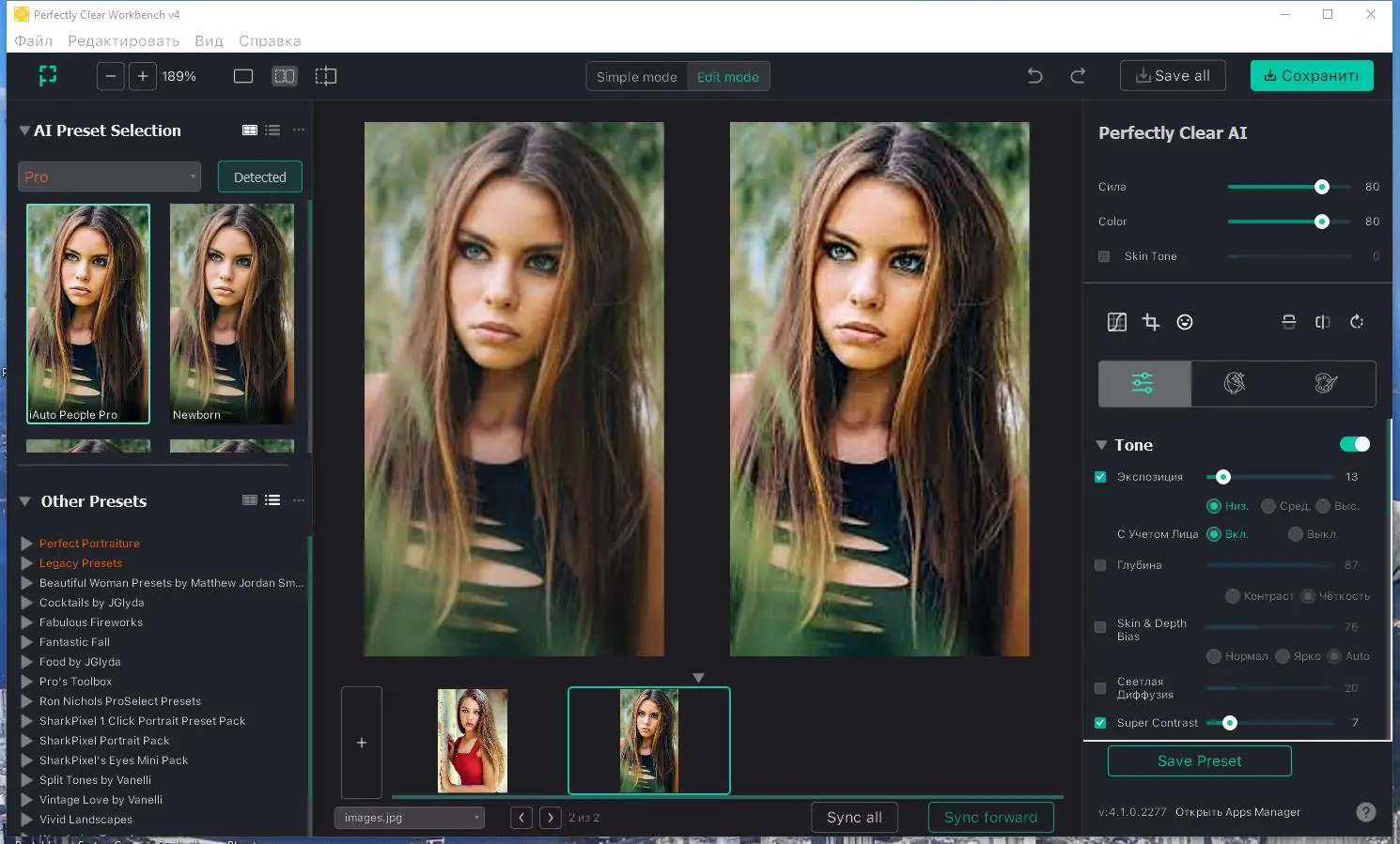 Обработка снимков в Perfectly Clear WorkBench основана на десятилетних исследованиях и запатентованных технологиях, что обеспечивает стабильный и предсказуемый результат.