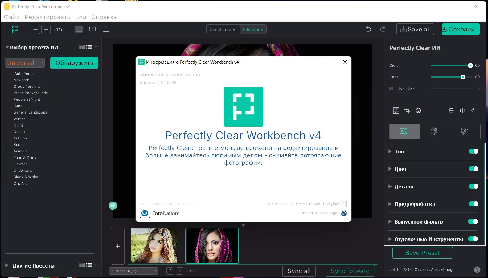Perfectly Clear представляет собой плагин для профессиональной коррекции изображений, основанный на результатах десятилетних научных исследований и более чем десяти запатентованных технологиях обработки. Это не просто фильтр, а комплексное решение, способное анализировать и улучшать фотографии с учётом множества параметров — от баланса белого до тонов кожи на портретах. Программа интегрируется в рабочее пространство графических приложений и работает как в автоматическом, так и в ручном режиме. Её алгоритмы корректируют экспозицию, динамический диапазон, резкость и цветопередачу, устраняя при этом шумы и визуальные искажения. Она подходит как для начинающих, так и для опытных пользователей, которым важна точность и скорость.