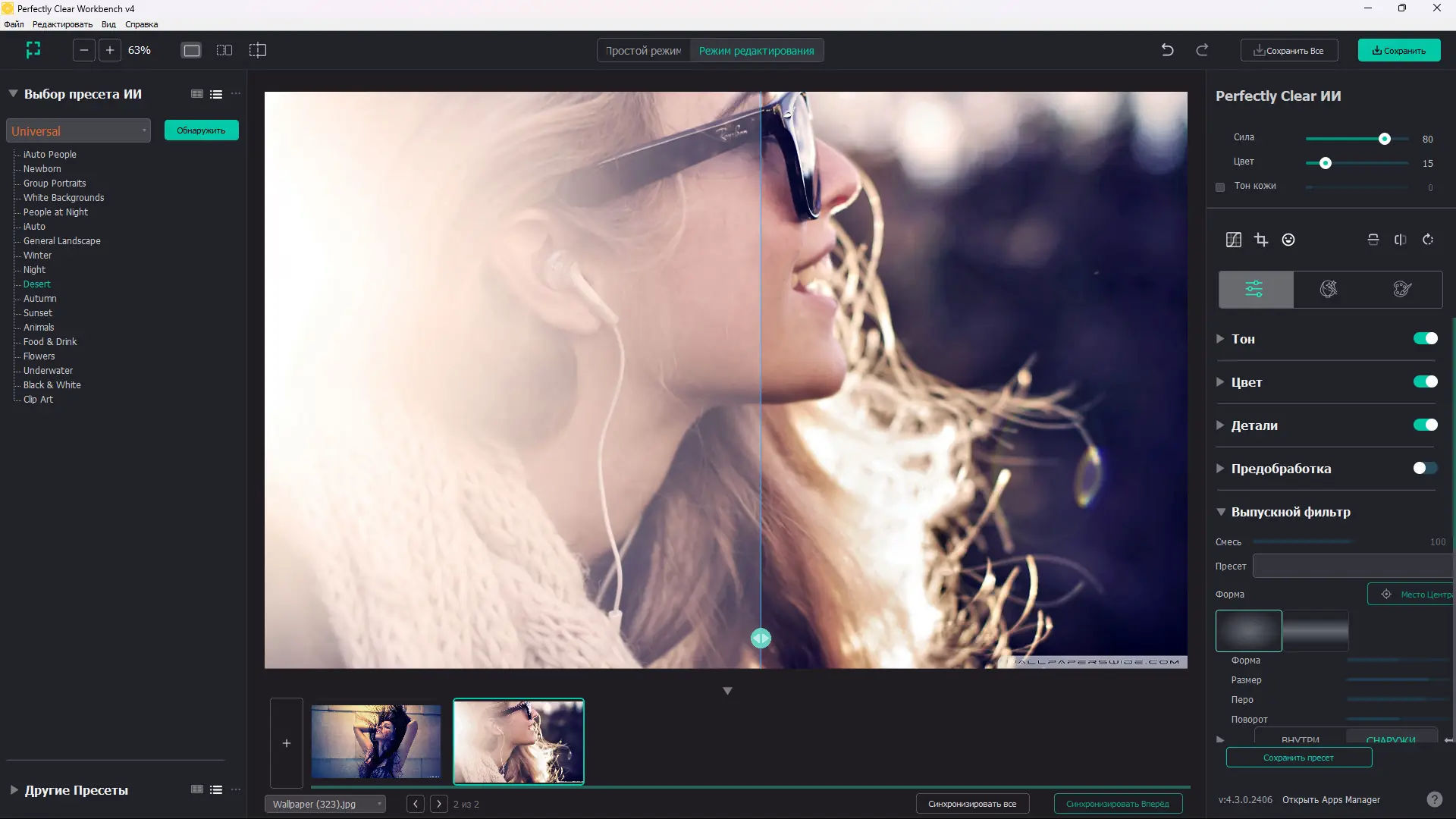 Работа с Perfectly Clear WorkBench