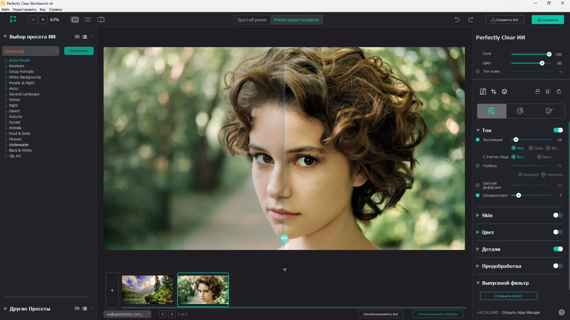 Perfectly Clear представляет собой плагин и автономное приложение для улучшения качества фотографий с использованием комплексных технологий цифровой обработки. Это решение разработано для фотографов, дизайнеров и обычных пользователей, которым важно быстро получать высококачественные снимки без необходимости ручной настройки множества параметров. Программа эффективно устраняет недостатки, возникающие из-за технических ограничений цифровых камер, таких как шумы, цветовые искажения, низкая резкость и эффект «красных глаз». что это за программа — становится понятно уже при первом запуске: это сочетание профессионального подхода к цветокоррекции и простоты в использовании. В основе технологии лежит более десятка запатентованных методик, которые работают одновременно, обеспечивая естественный и выразительный результат.