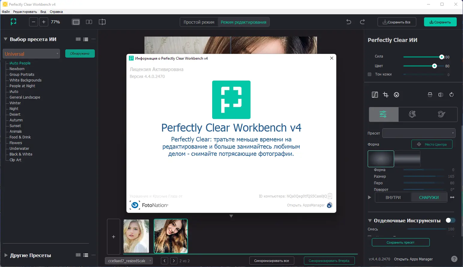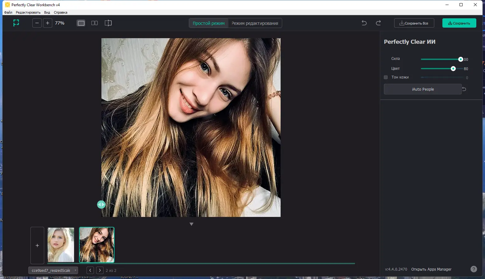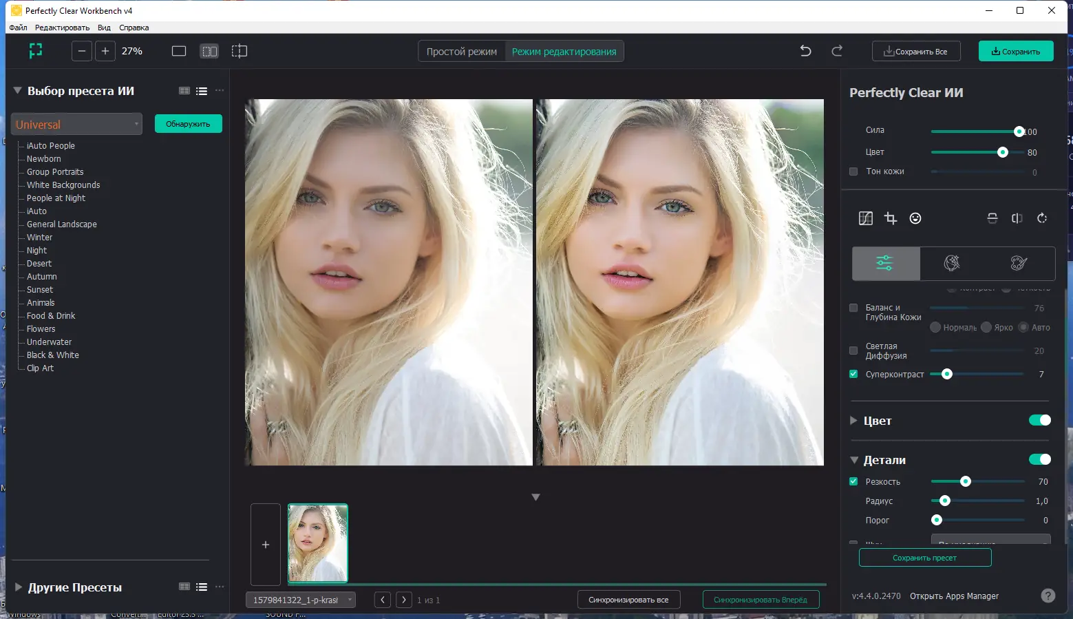 - Автоматическая коррекция с высокой точностью и сохранением естественности изображения.