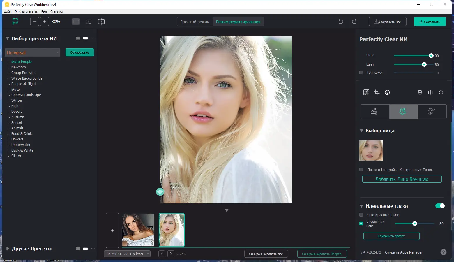 Perfectly Clear WorkBench — это мощный инструмент для автоматической и ручной коррекции изображений, разработанный на основе передовых технологий обработки фотографий. Программа устраняет дефекты снимков, связанные с экспозицией, цветопередачей, шумами и качеством кожи, обеспечивая профессиональный результат без необходимости глубоких знаний в фотошопе. Работа с ней подходит как для новичков, так и для опытных фотографов, стремящихся ускорить процесс постобработки.