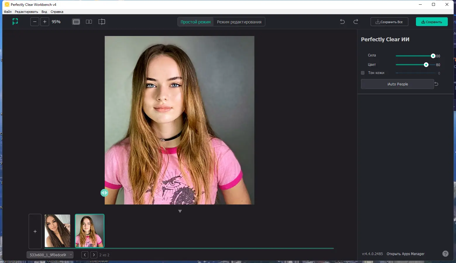 Интерфейс программы интуитивно понятен и не требует длительного освоения. После запуска пользователь может выбрать режим автокоррекции, при котором изображение анализируется и оптимизируется за несколько секунд. В ручном режиме доступны тонкие настройки: баланс белого, насыщенность, резкость, тон кожи, экспозиция и другие параметры. Области коррекции можно ограничивать с помощью масок, что особенно полезно при работе с портретами. Поддержка слоев позволяет вносить изменения без потери исходного качества. В новой версии увеличен диапазон смарт-резкости до 200 единиц, что даёт больше контроля над финальным результатом. Программа корректно отображается на широкоформатных мониторах, а ярлыки ускоряют выполнение типовых операций. Возможность запуска через удалённый рабочий стол делает её пригодной для использования в удалённых сценариях.