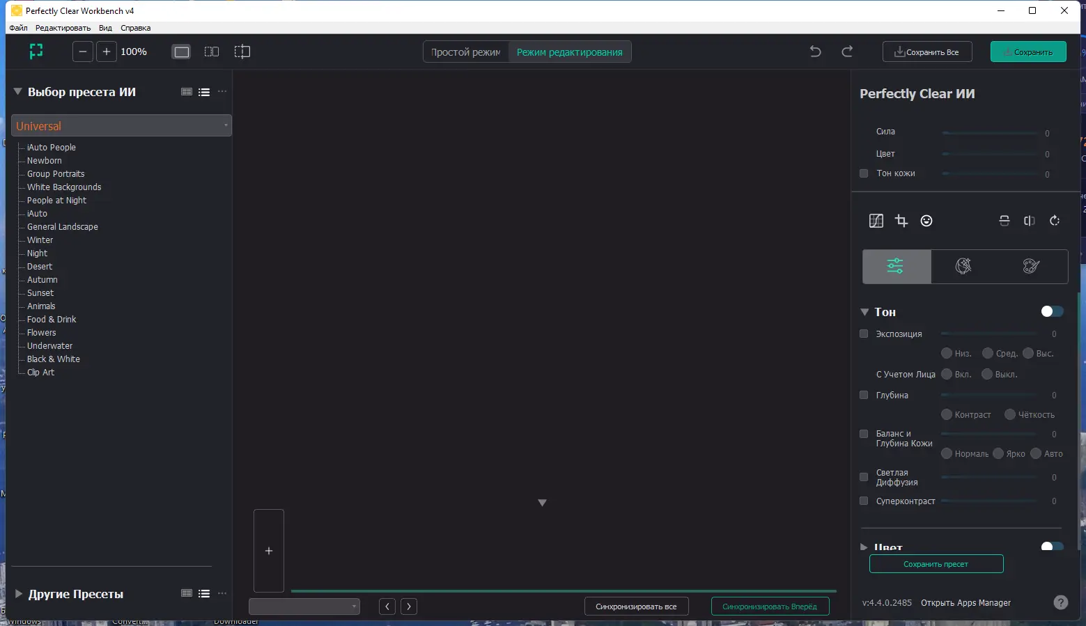 Perfectly Clear WorkBench — это мощный инструмент для автоматической и ручной коррекции изображений, разработанный на основе передовых технологий обработки фото. Программа устраняет дефекты снимков, связанные с экспозицией, цветопередачей, шумами и качеством кожи, возвращая фотографиям естественную выразительность. Плагин легко интегрируется в рабочий процесс фотографов и дизайнеров, обеспечивая высокую точность и скорость обработки.
