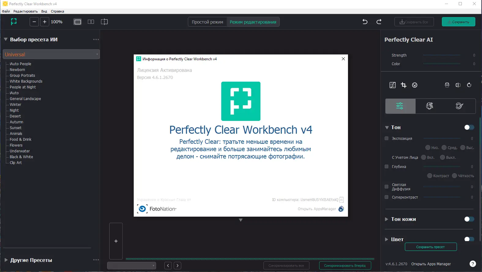 Perfectly Clear сочетает в себе простоту интерфейса и глубину настроек, обеспечивая высокую производительность даже на средних конфигурациях ПК.
