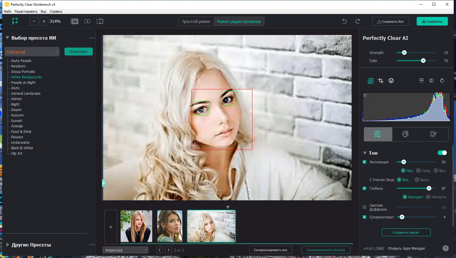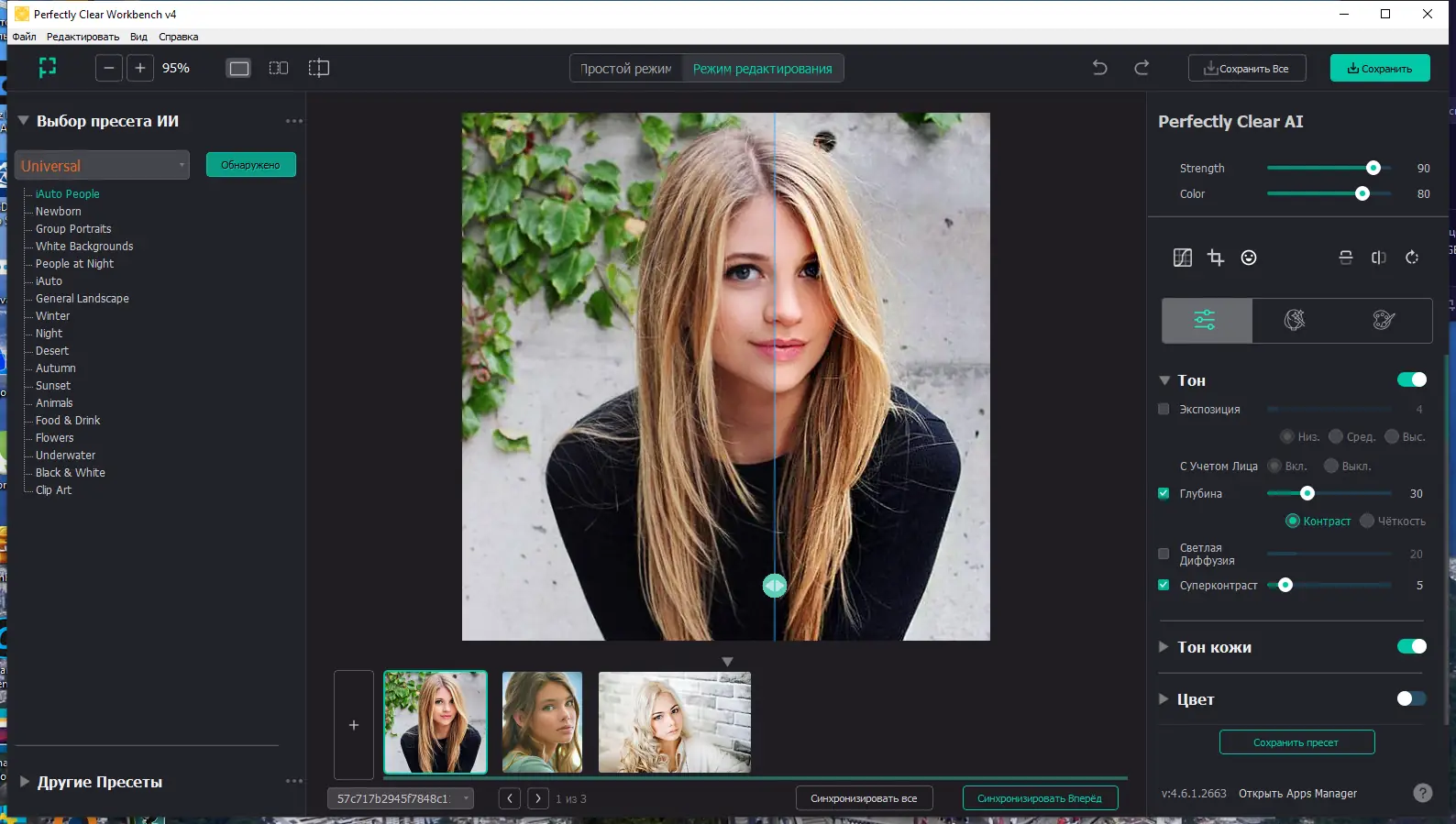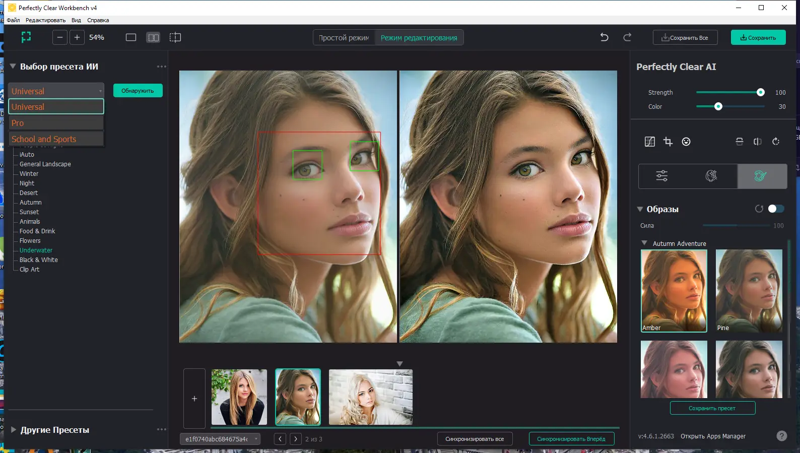 Perfectly Clear — это мощное программное решение для автоматической и ручной коррекции цифровых фотографий, устраняющее типичные дефекты снимков с помощью передовых алгоритмов обработки изображений. Приложение эффективно справляется с проблемами экспозиции, цветопередачи, шумов и других визуальных искажений, обеспечивая высокое качество изображения без необходимости глубоких знаний в фотошопе.