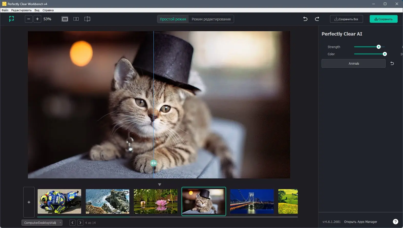 Работа с Perfectly Clear WorkBench