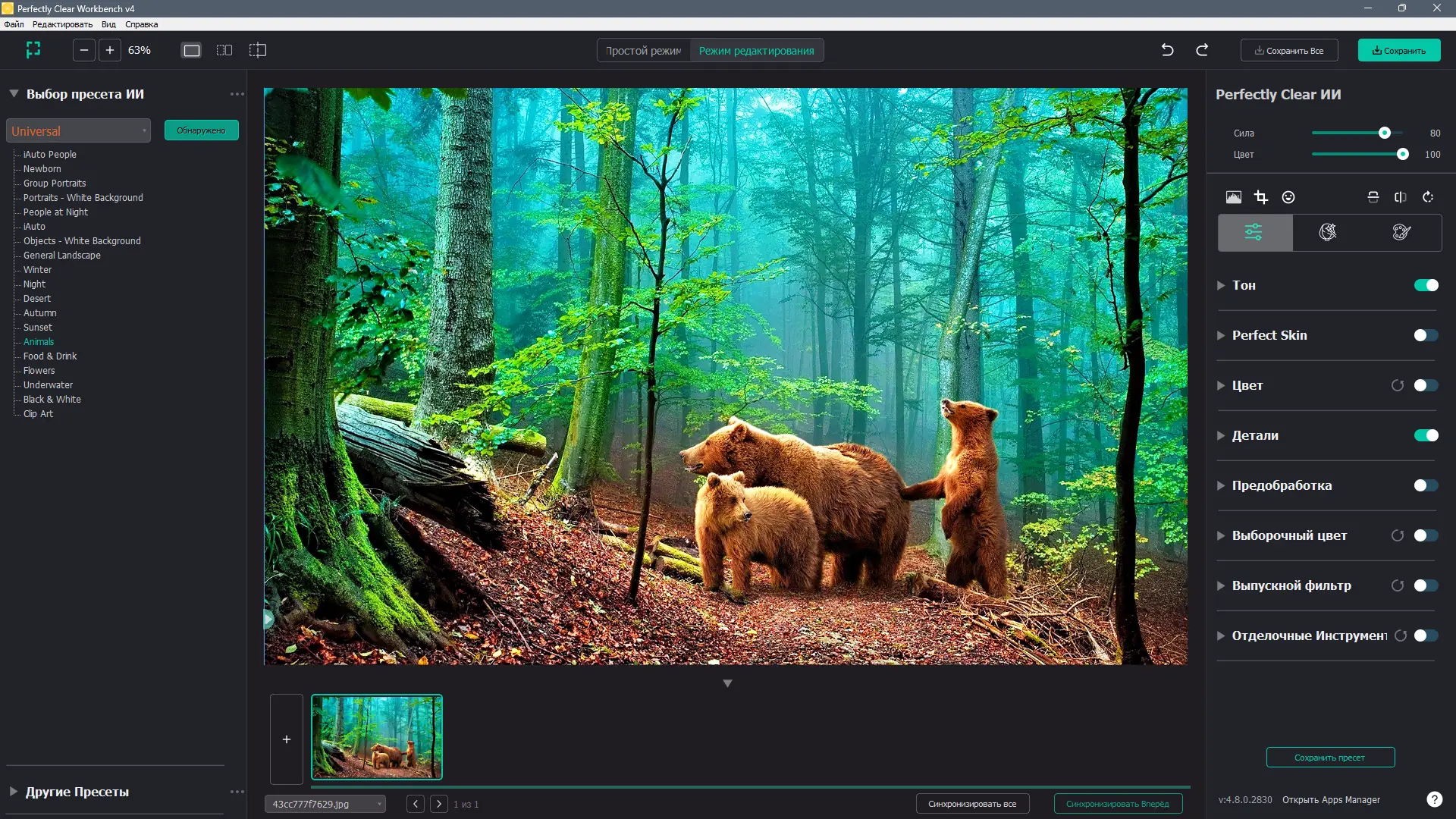 Perfectly Clear — это не просто редактор, а целый workbench для комплексной обработки изображений, объединяющий автоматику и контроль пользователя