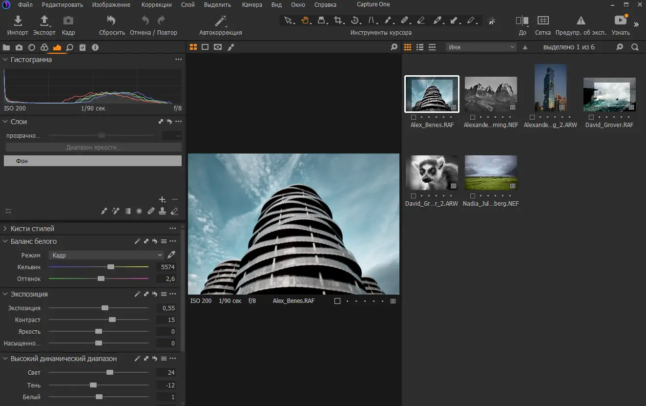 - Поддержка RAW-файлов от сотен камер, включая новейшие модели от ведущих производителей.