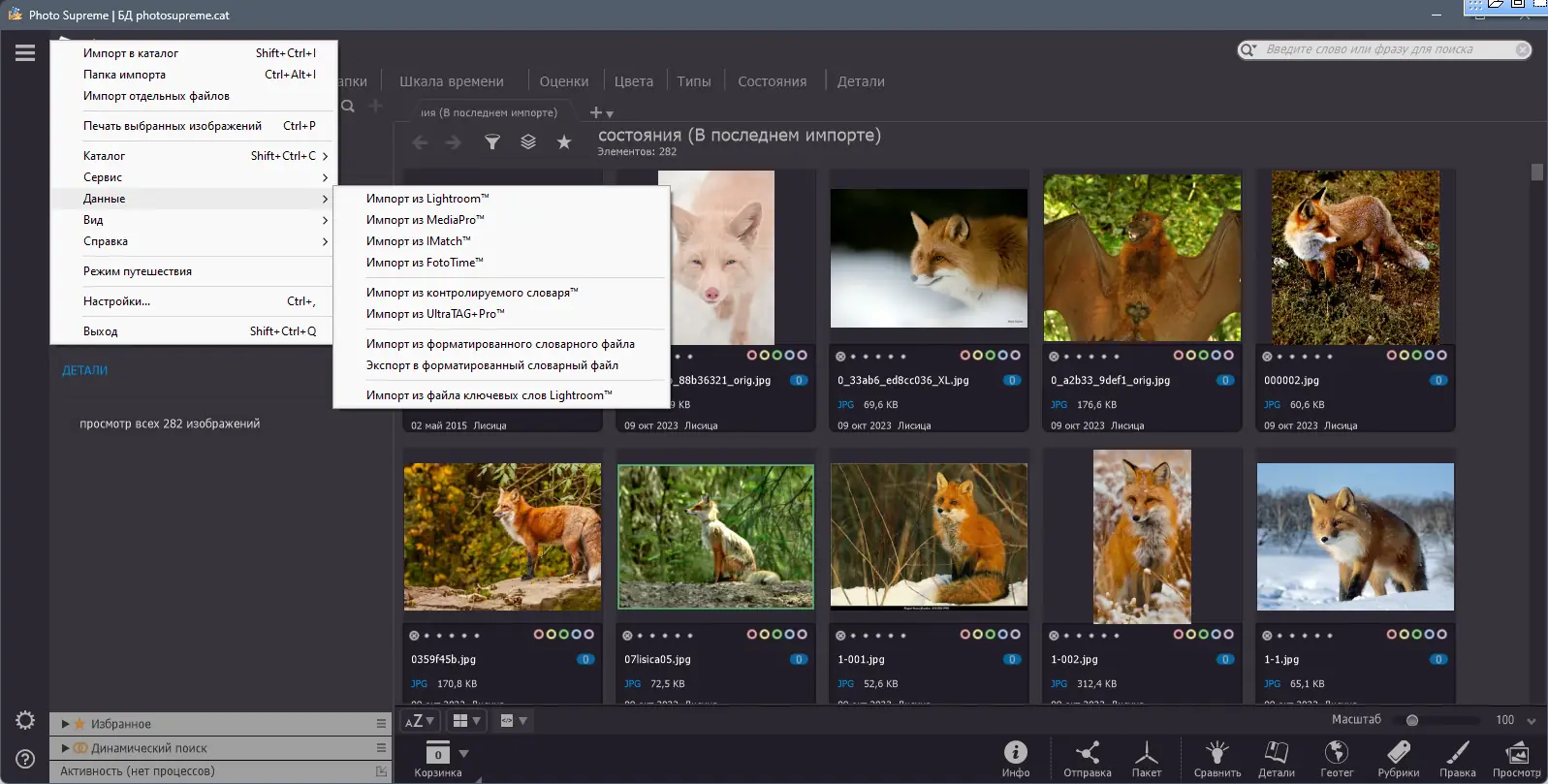 Photo Supreme демонстрирует высокую эффективность при работе с большими библиотеками изображений, сочетая скорость, гибкость и функциональность. Программа поддерживает широкий спектр форматов, включая RAW-файлы от ведущих производителей фотоаппаратов, что особенно важно для профессионалов. Благодаря технологии idimager, обеспечивается стабильная работа с метаданными и высокая точность поиска по атрибутам.