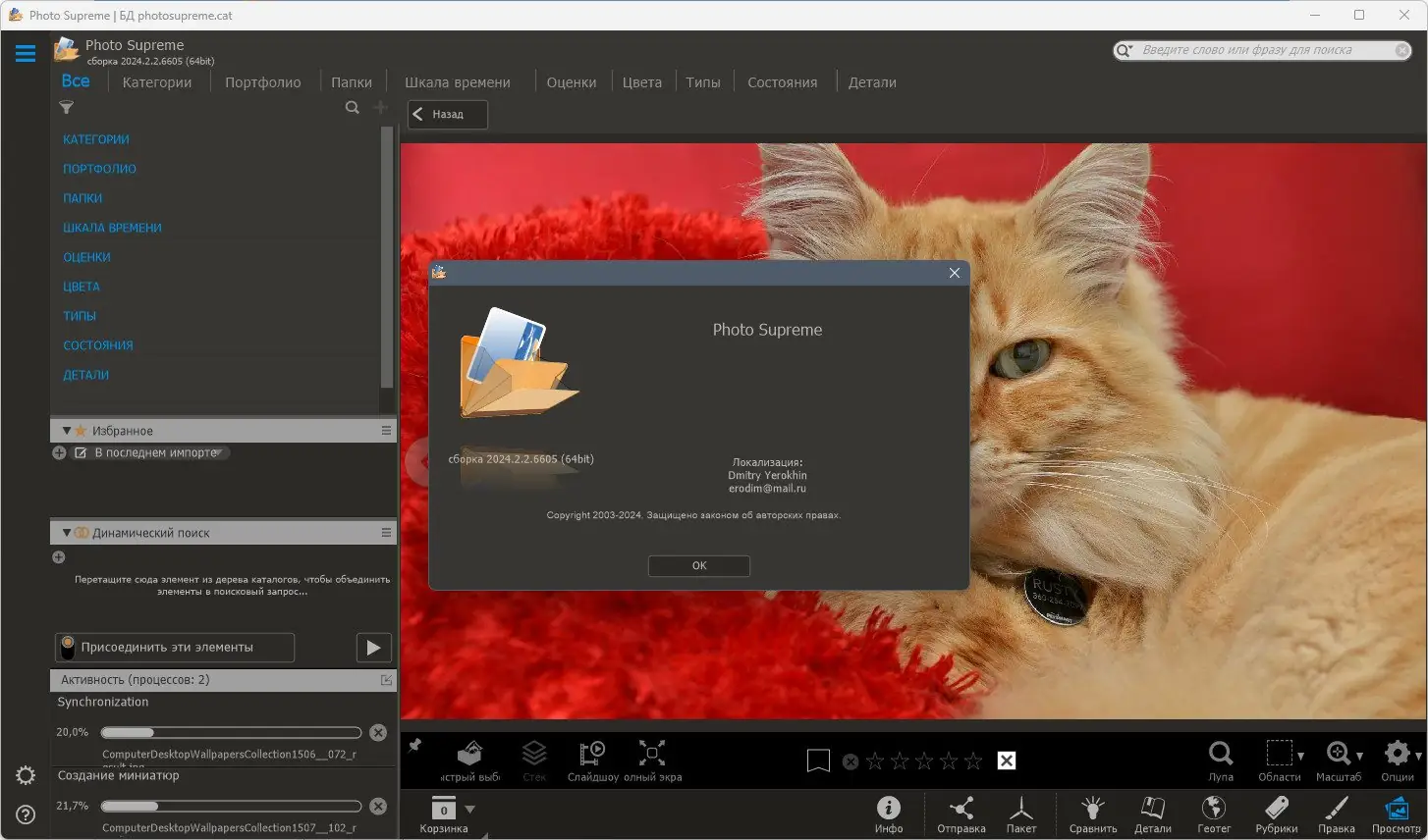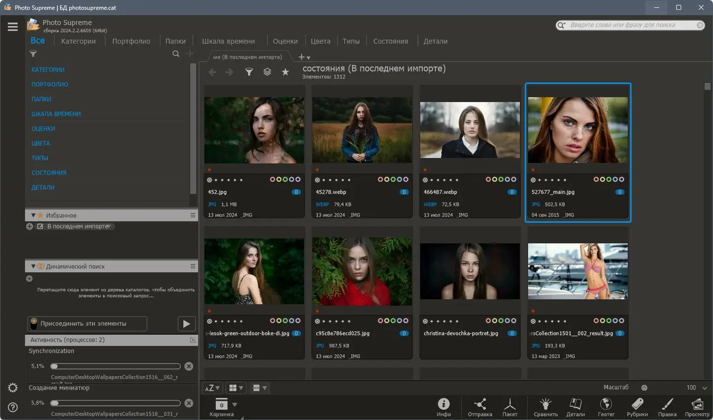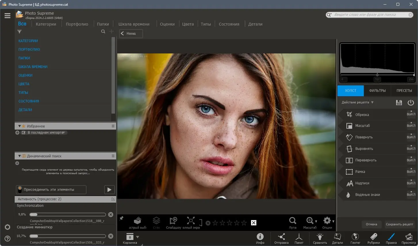 Photo Supreme — это универсальный инструмент для управления цифровыми фотографиями, созданный для эффективной каталогизации, просмотра и обработки изображений. Программа поддерживает широкий спектр форматов, включая RAW-файлы, и предлагает продвинутые функции поиска, распознавания лиц и синхронизации с облачными сервисами. Она особенно полезна для фотографов, работающих с большими коллекциями снимков.