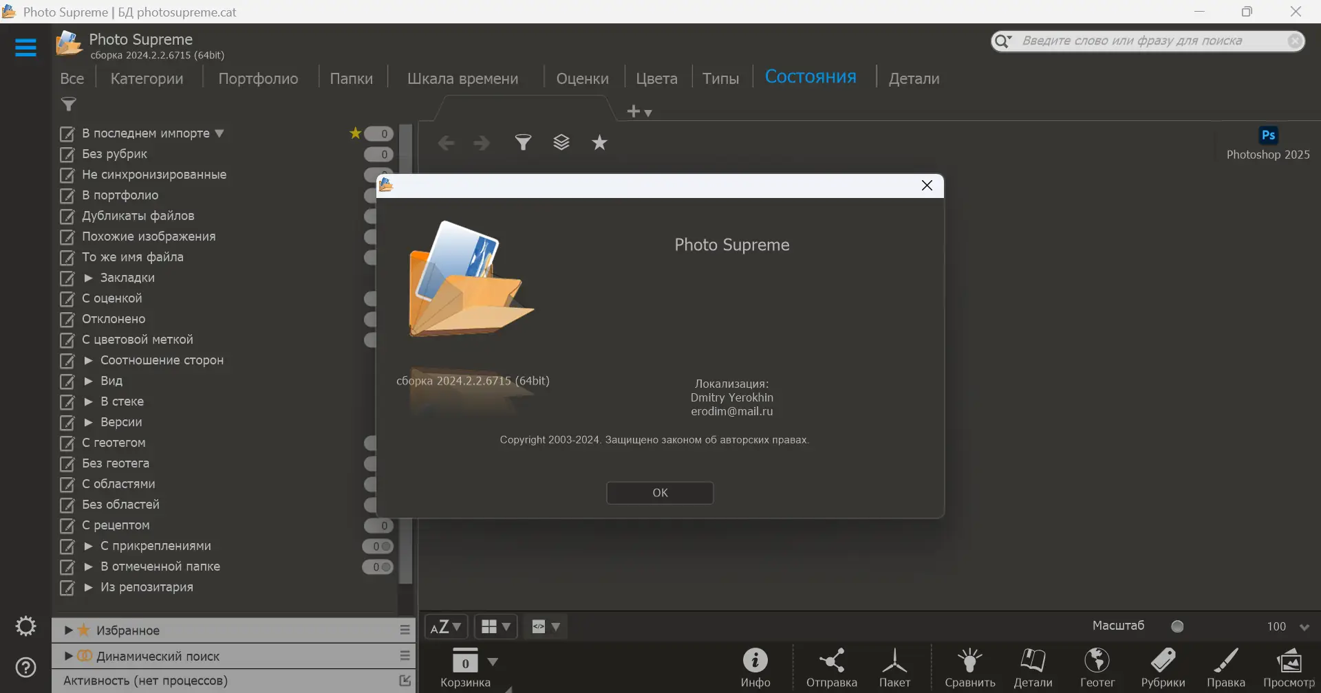 Photo Supreme — это мощный инструмент для каталогизации и управления цифровыми изображениями, разработанный для фотографов и коллекционеров визуального контента. Программа позволяет эффективно организовывать, просматривать и обрабатывать фото, поддерживая широкий спектр форматов, включая RAW-файлы. Благодаря продуманному интерфейсу и расширенным функциям, она подходит как для любителей, так и для профессионалов, стремящихся к порядку в медиатеке.