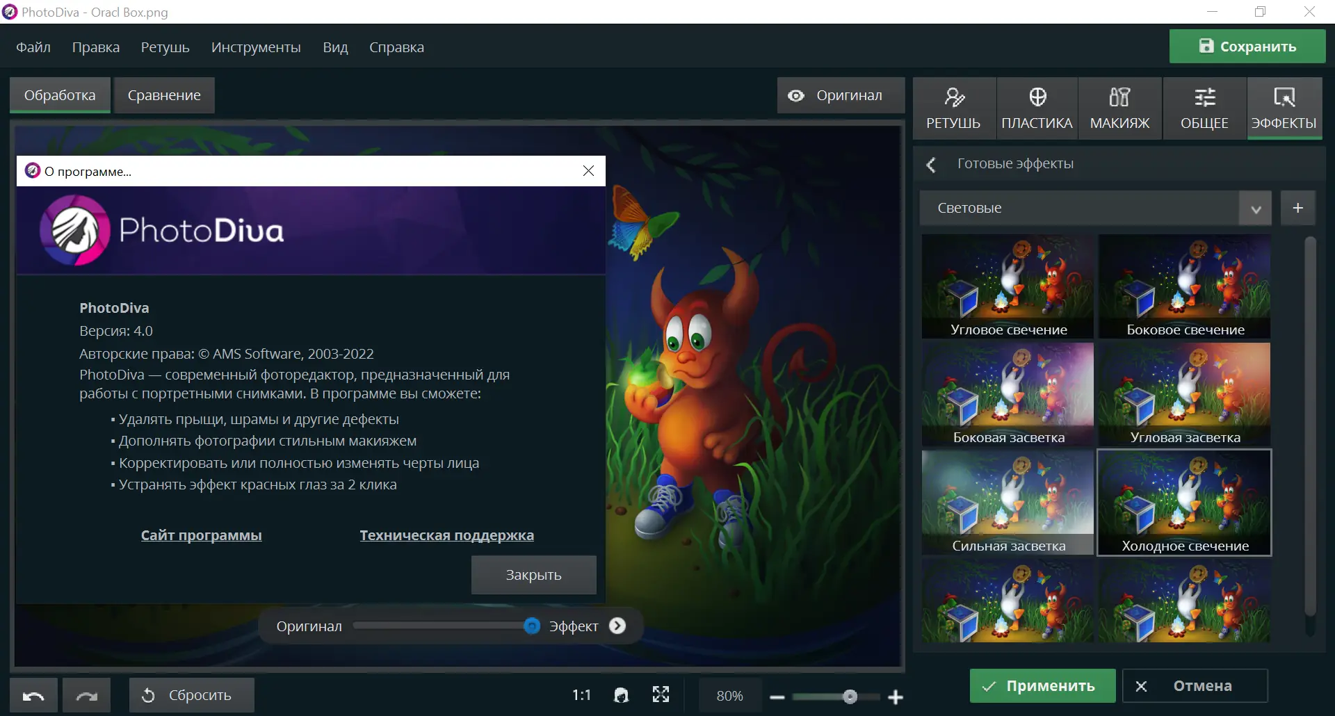 PhotoDiva — это специализированный инструмент в категории графических редакторов, ориентированный на обработку портретной фотографии. Программа предлагает комплексные решения для улучшения внешнего вида человека на снимке: от базовой коррекции до глубокой ретуши. Благодаря продуманному интерфейсу, даже пользователи без опыта в графических редакторах могут добиться профессиональных результатов за короткое время. Программа поддерживает как ручную настройку параметров, так и автоматическую обработку с помощью встроенных пресетов.