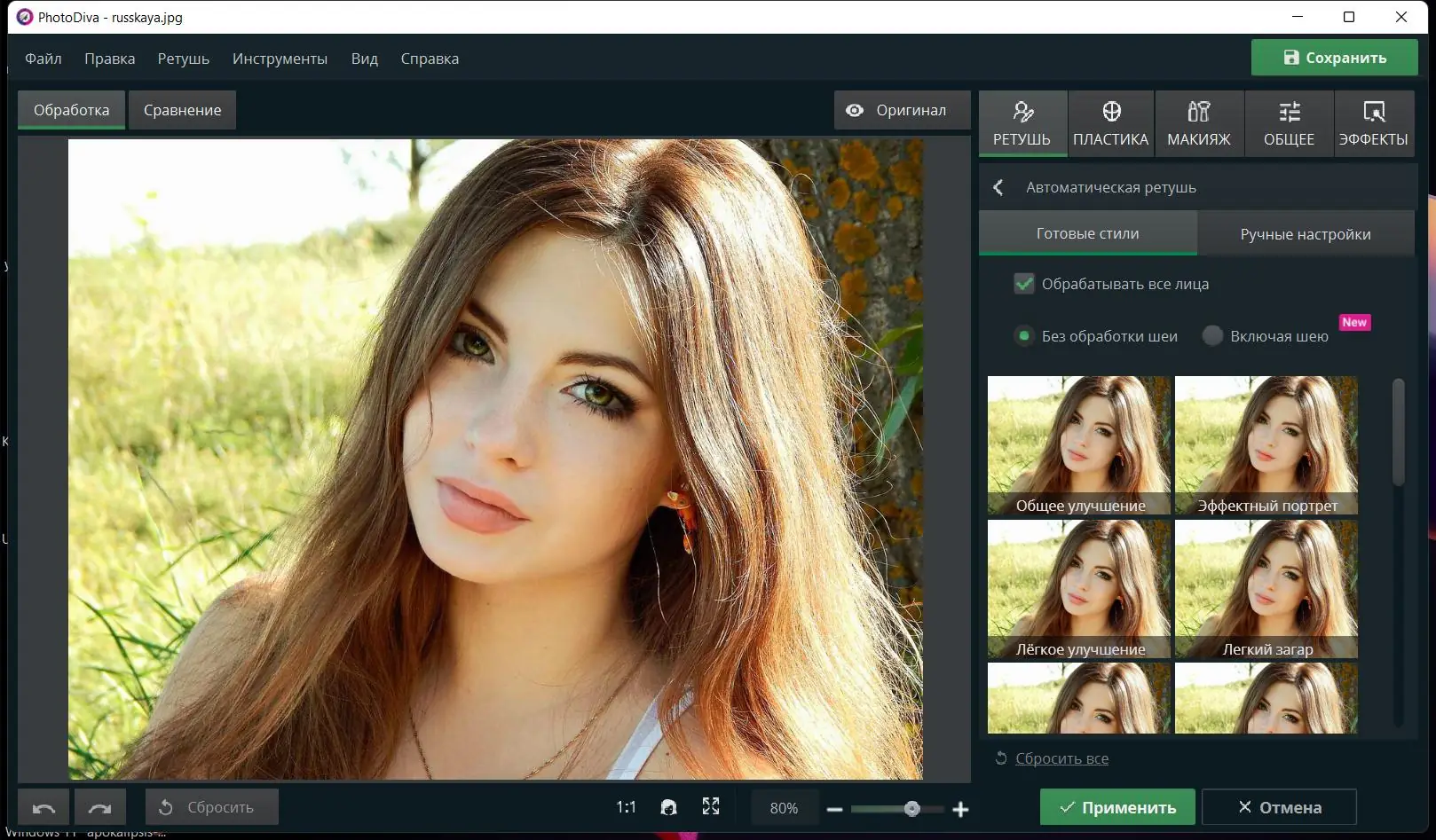 PhotoDiva поддерживает как ручную настройку, так и автоматическую обработку, что делает её универсальной для разных задач.