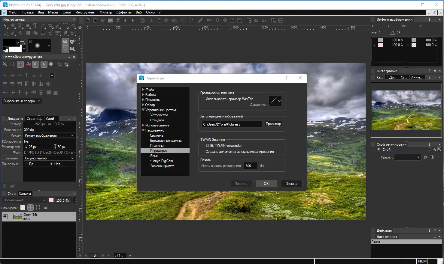 PhotoLine сочетает в себе функционал фотошопа и векторного редактора, позволяя работать с изображениями на профессиональном уровне. Программа поддерживает 16 бит на канал, что обеспечивает высокую точность цветопередачи при редактировании. Работа с цветовыми моделями CMYK и Lab, а также управление цветами через ICC-профили делает её пригодной для полиграфии и дизайна упаковки. Пользователи могут редактировать изображения без потери качества, поворачивать их, обрабатывать EXIF и IPTC-данные, а также использовать слои и маски для сложных композиций.