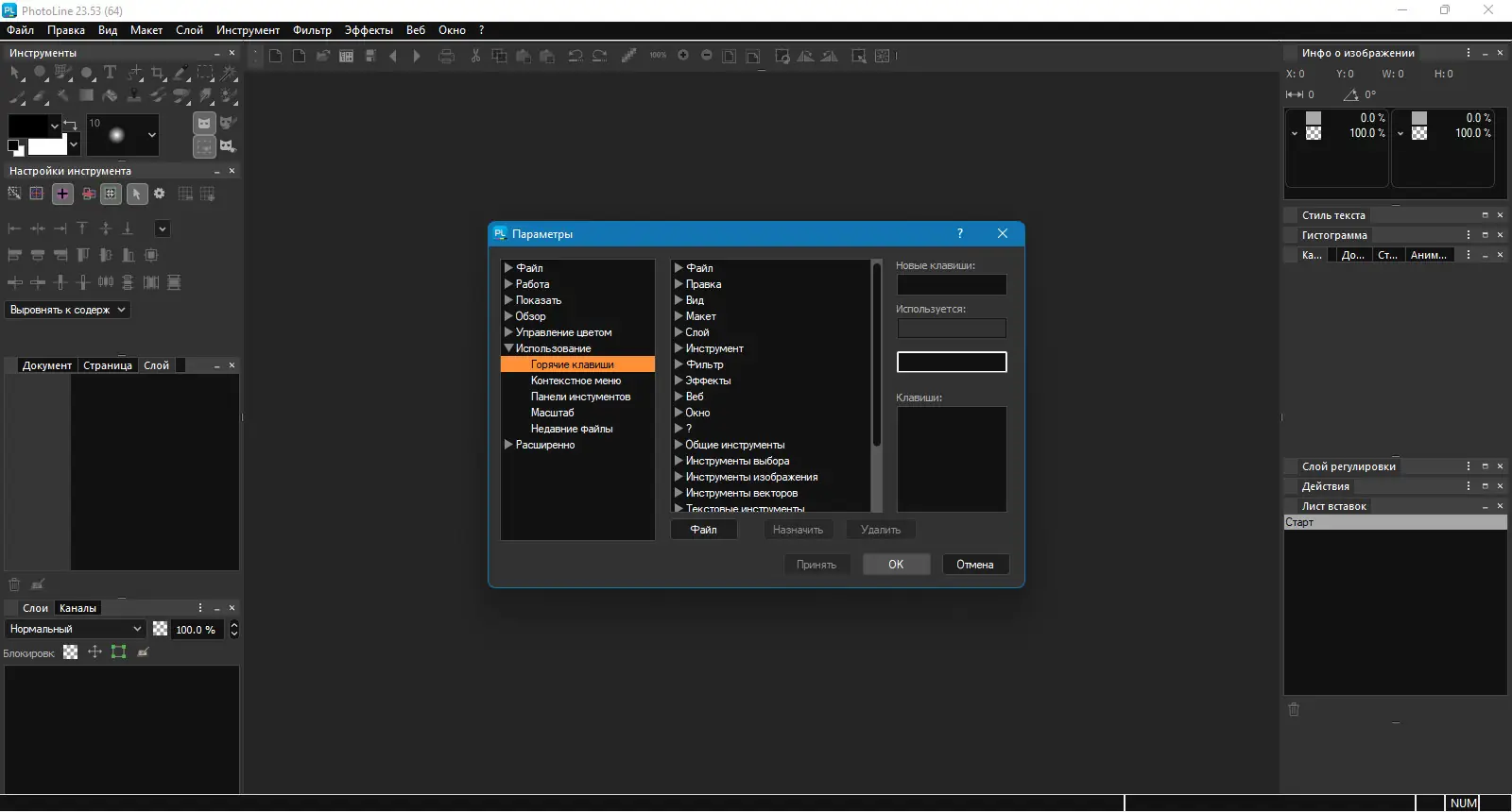 PhotoLine — это универсальный редактор растровой и векторной графики, сочетающий в себе мощные инструменты для обработки изображений, создания иллюстраций, верстки и веб-дизайна. Программа поддерживает широкий спектр форматов, работает с CMYK, Lab и 16-битными каналами, а также позволяет создавать анимации, HTML-галереи и PDF-документы. Удобный интерфейс делает её доступной как для новичков, так и для профессионалов.