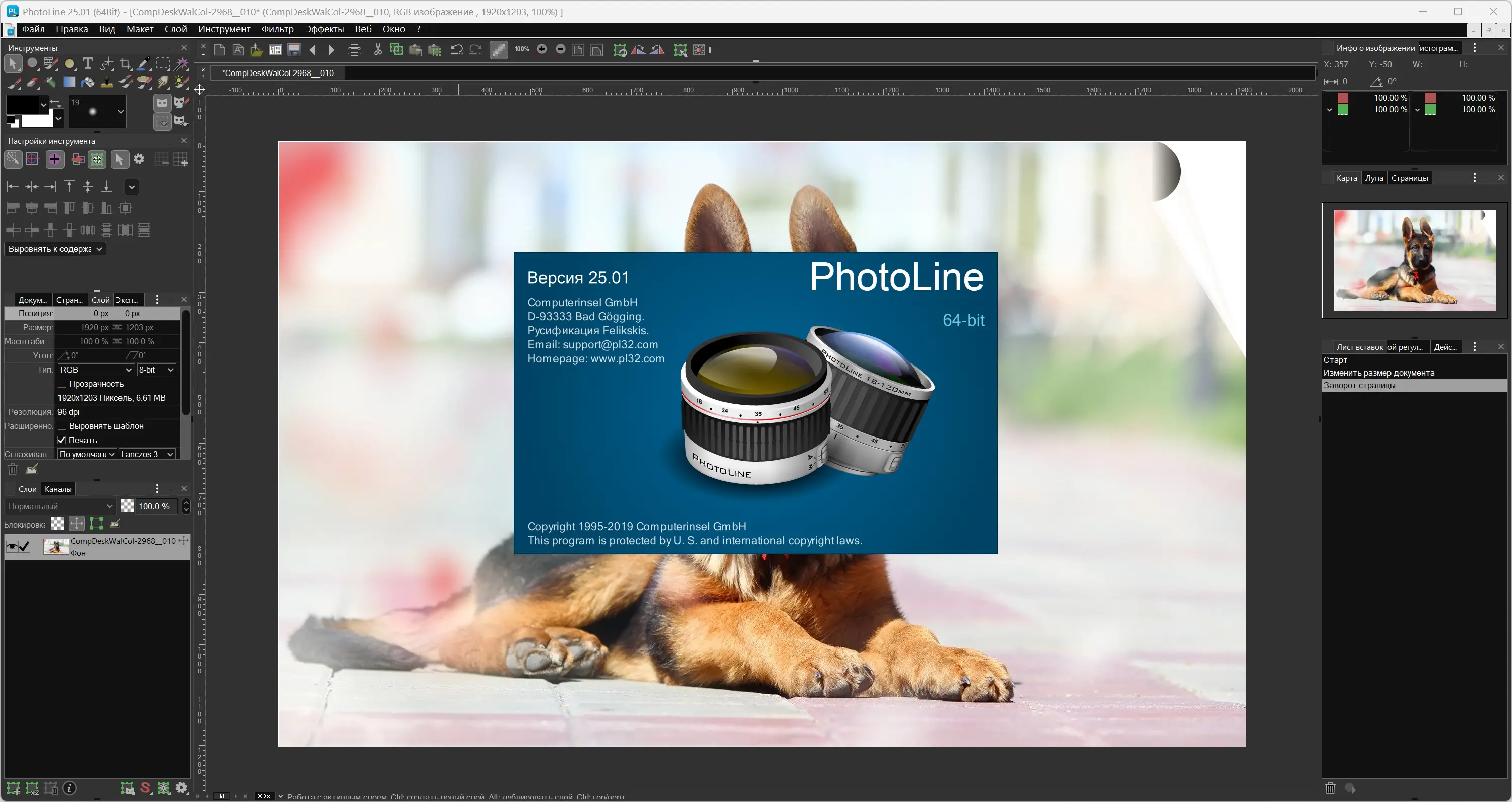 PhotoLine — универсальный редактор растровой и векторной графики, сочетающий мощные инструменты обработки изображений с интуитивным интерфейсом. Программа поддерживает широкий спектр форматов, включая PDF, PSD, TIFF и PNG, а также работает с CMYK и Lab, что делает её подходящей как для веб-дизайна, так и для полиграфии. Возможности включают ретушь фото, создание анимаций, редактирование текста и слоёв, экспорт в HTML и печать многостраничных документов. Пользователи могут бесплатно скачать PhotoLine в версии 19.01 portable или установить полнофункциональную сборку с поддержкой русского языка.
