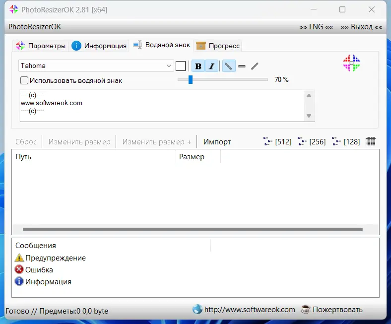 Работа с PhotoResizerOK