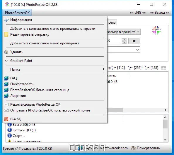PhotoResizerOK сочетает в себе простоту интерфейса и мощные функции обработки изображений. Благодаря оптимизированному движку программа справляется с большими объёмами данных, не нагружая систему. При этом она остаётся интуитивно понятной и не перегружена лишними опциями.