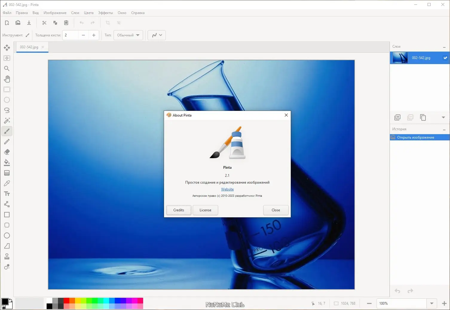 Pinta — это легковесный растровый графический редактор с открытым исходным кодом, разработанный для простой и интуитивной работы с изображениями. Программа подойдёт тем, кто ищет доступное решение для базового рисования, редактирования фото и создания простых графических проектов без необходимости изучать сложные инструменты.