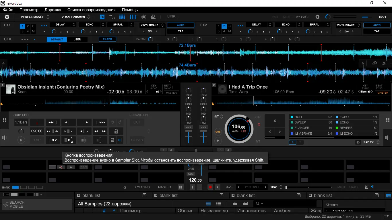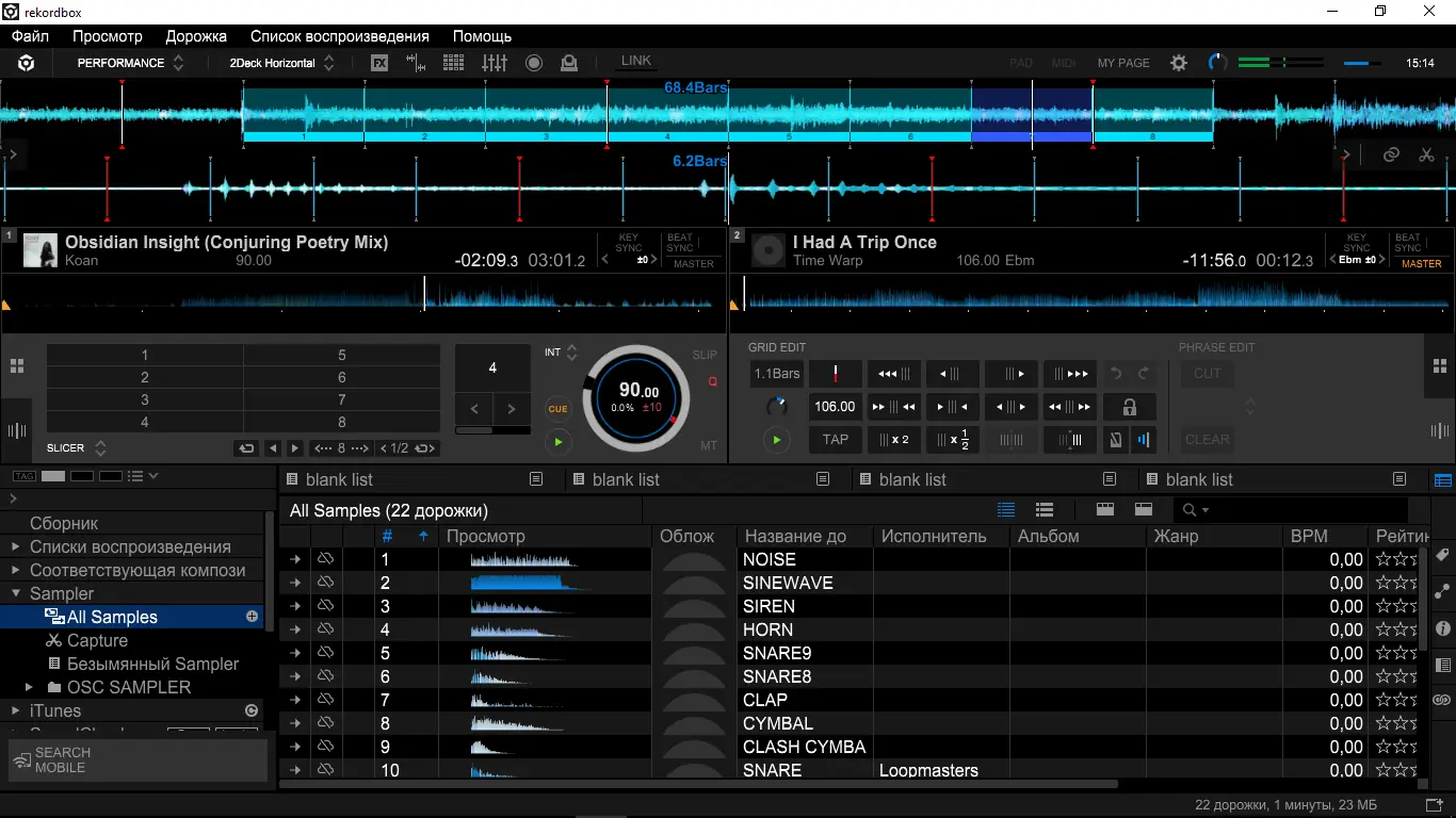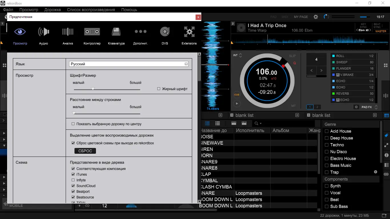 - Расширенные функции анализа треков: определение BPM, тональности, сегментов и динамических точек.