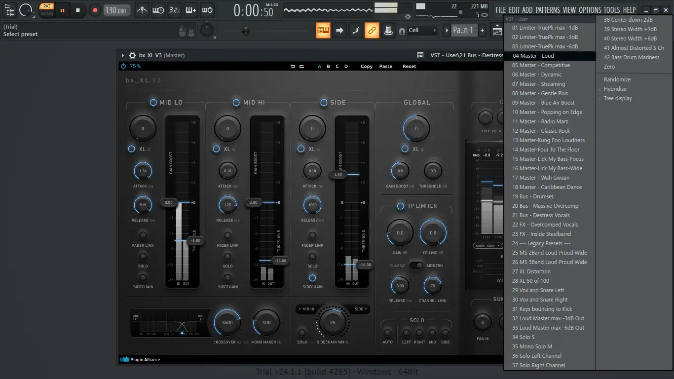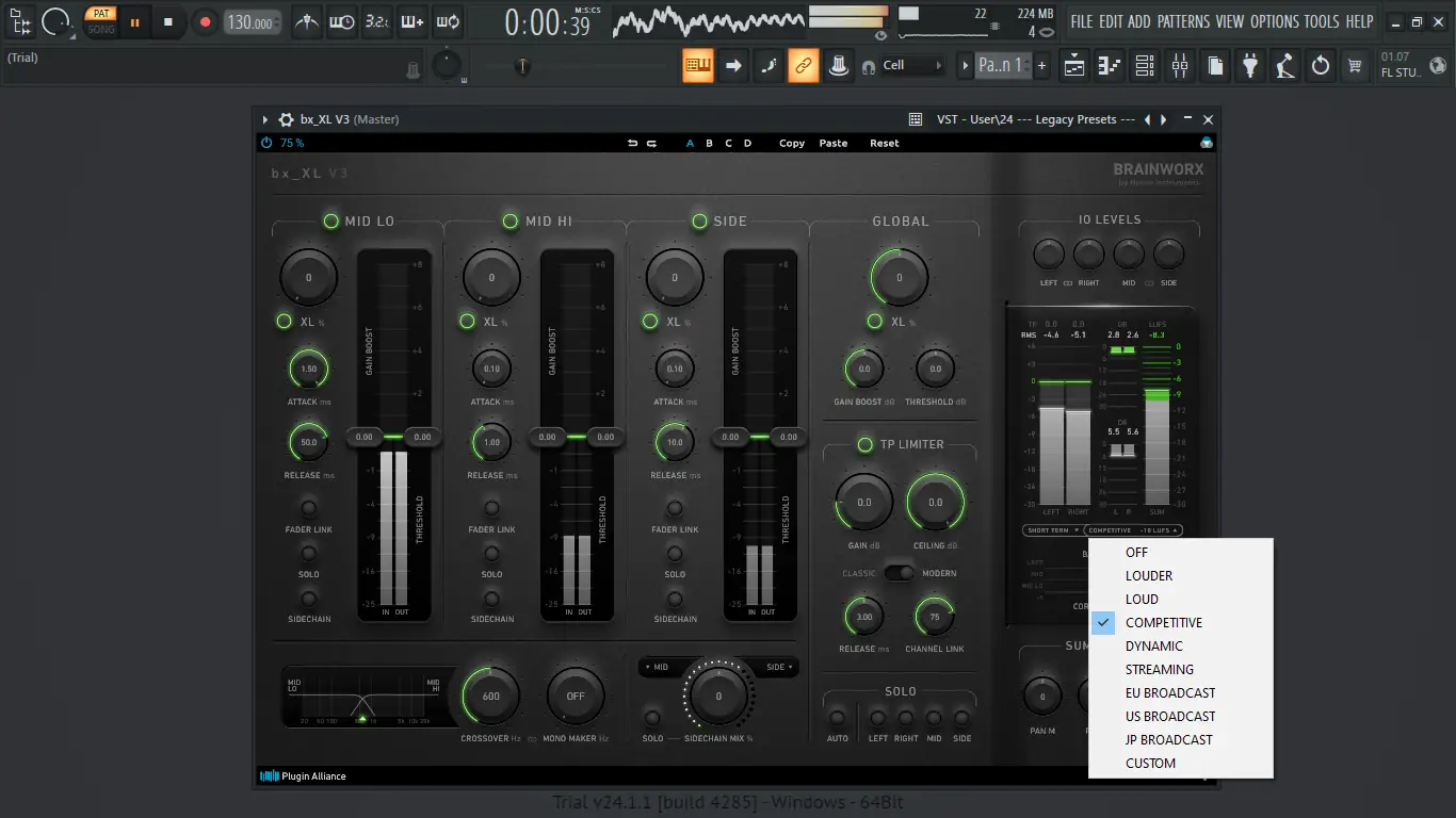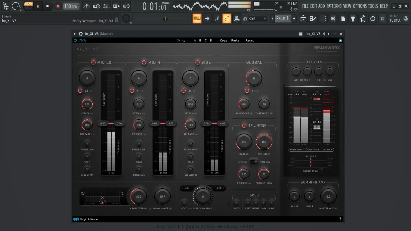 Plugin Alliance & Brainworx bx_XL V3 представляет собой эволюцию предыдущих версий лимитеров, ориентированных на мастеринг-инженеров. Основой технологии стал уникальный подход к обработке mid/side сигнала, унаследованный от легендарного эквалайзера bx_digital. Разделение среднего канала на две полосы — низкие и высокие частоты — позволяет точнее управлять динамикой, особенно при работе с бас-барабаном и другими элементами ритм-секции. Такой подход обеспечивает чёткость звучания даже при сильном сжатии.