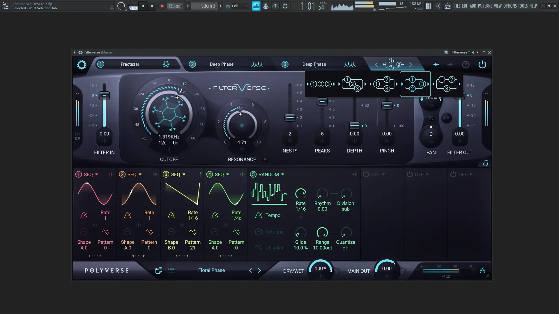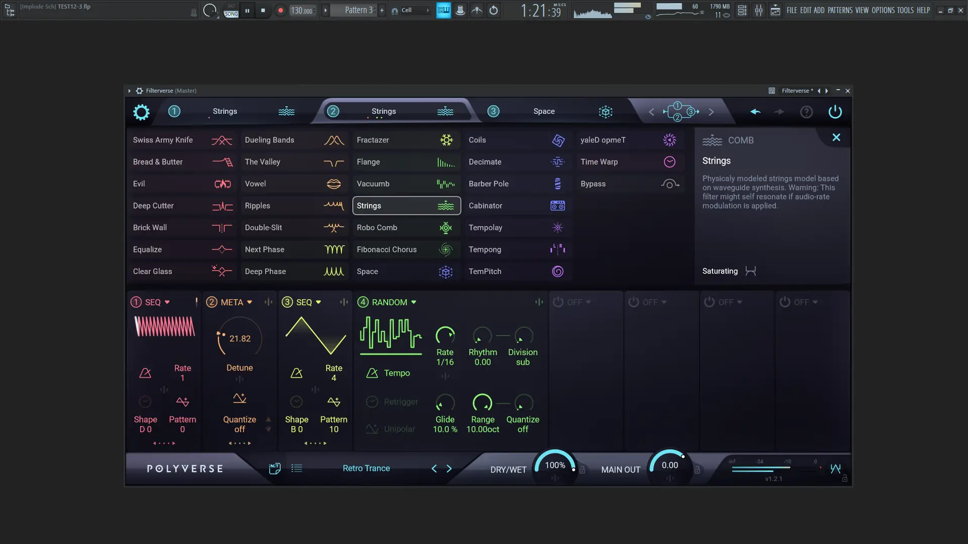 Filterverse оптимизирован для модуляции на частоте аудиосигнала, что делает его особенно мощным инструментом для создания движущихся текстур и живых звуковых паттернов.