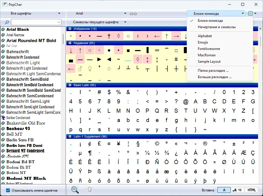 PopChar — это удобный инструмент для вставки специальных символов из установленных шрифтов без необходимости запоминать горячие клавиши. Программа поддерживает Unicode и совместима с широким спектром приложений, позволяя быстро находить и использовать редкие знаки.