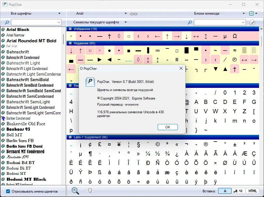 PopChar помогает максимально использовать возможности современных шрифтов, делая процесс вставки специальных символов простым и интуитивно понятным.