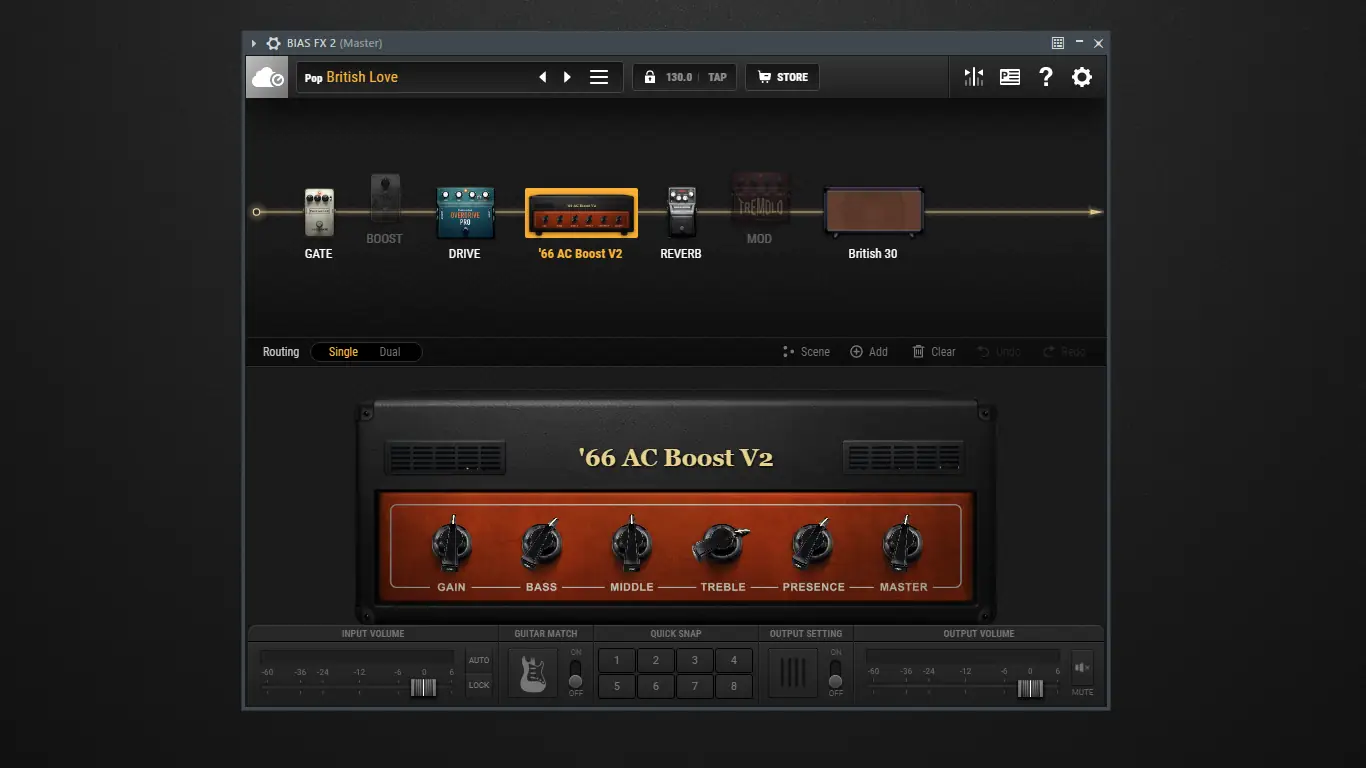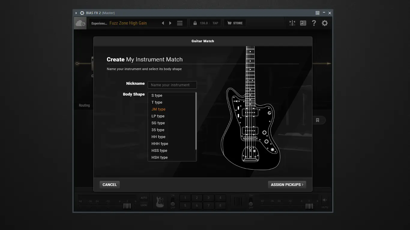 Технология Guitar Match преобразует тембр вашей гитары, имитируя звучание моделей с разными корпусами, звукоснимателями и конструкциями.