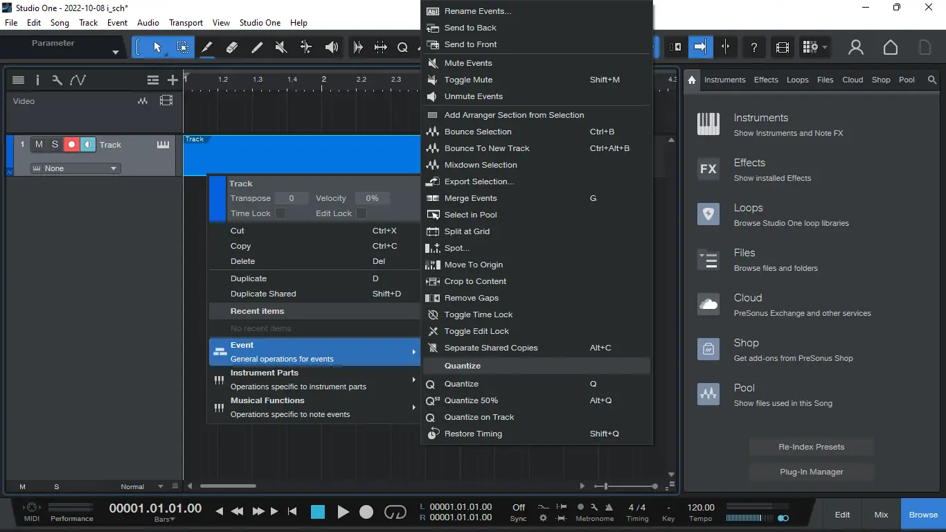 Использование программы начинается с выбора шаблона проекта, который можно подобрать вручную или с помощью умных рекомендаций. После создания проекта пользователь может добавлять аудио-, MIDI- и инструментальные дорожки, а также включать видеофайлы для синхронизации с аудиорядом. Видео интегрируется на глобальную дорожку, что позволяет легко ориентироваться по визуальному контенту при работе над саундтреками или подкастами. Аудиодорожка из видео автоматически направляется в микшер, где её можно обрабатывать стандартными эффектами, такими как эквалайзер ProEQ 3 или реверберация. Добавление текста к MIDI-регионам позволяет визуализировать слова и использовать их как караоке-подсказки во время записи вокала. Каждая строчка текста становится активной меткой, клик по которой перемещает курсор в нужную позицию. Интерфейс можно адаптировать под конкретные задачи — скрыть неиспользуемые панели, изменить цветовую схему или добавить иконки к дорожкам для быстрой идентификации. Совместная работа упрощена через Sphere, где реализованы функции обмена проектами, комментирования и быстрой синхронизации изменений. Плагины доступны как в родной экосистеме, так и через внешние DAW с помощью PreSonus Hub, что расширяет совместимость.