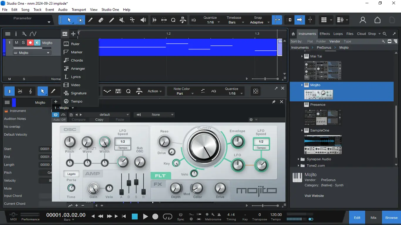 Использование PreSonus Studio One начинается с создания проекта, где можно одновременно работать с аудио, MIDI и нотной записью. Интерфейс построен по принципу drag-and-drop, что ускоряет процесс компоновки треков и применения эффектов. Пользователи могут быстро переключаться между режимами записи, сведения и мастеринга, а встроенные инструменты, такие как Audio Batch Converter и Presence XT Editor, позволяют эффективно обрабатывать файлы в автоматическом режиме. Синтезаторы Lead Architect и Deep Flight One дают возможность создавать сложные электронные текстуры, а расширенный набор сэмплов и лупов служит источником вдохновения для новых треков. Функция синхронизации с проектами мастеринга позволяет вносить изменения в миксы без потери настроек фейдов и уровней.