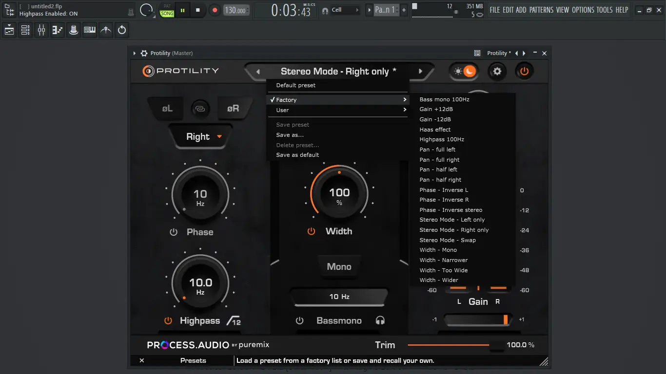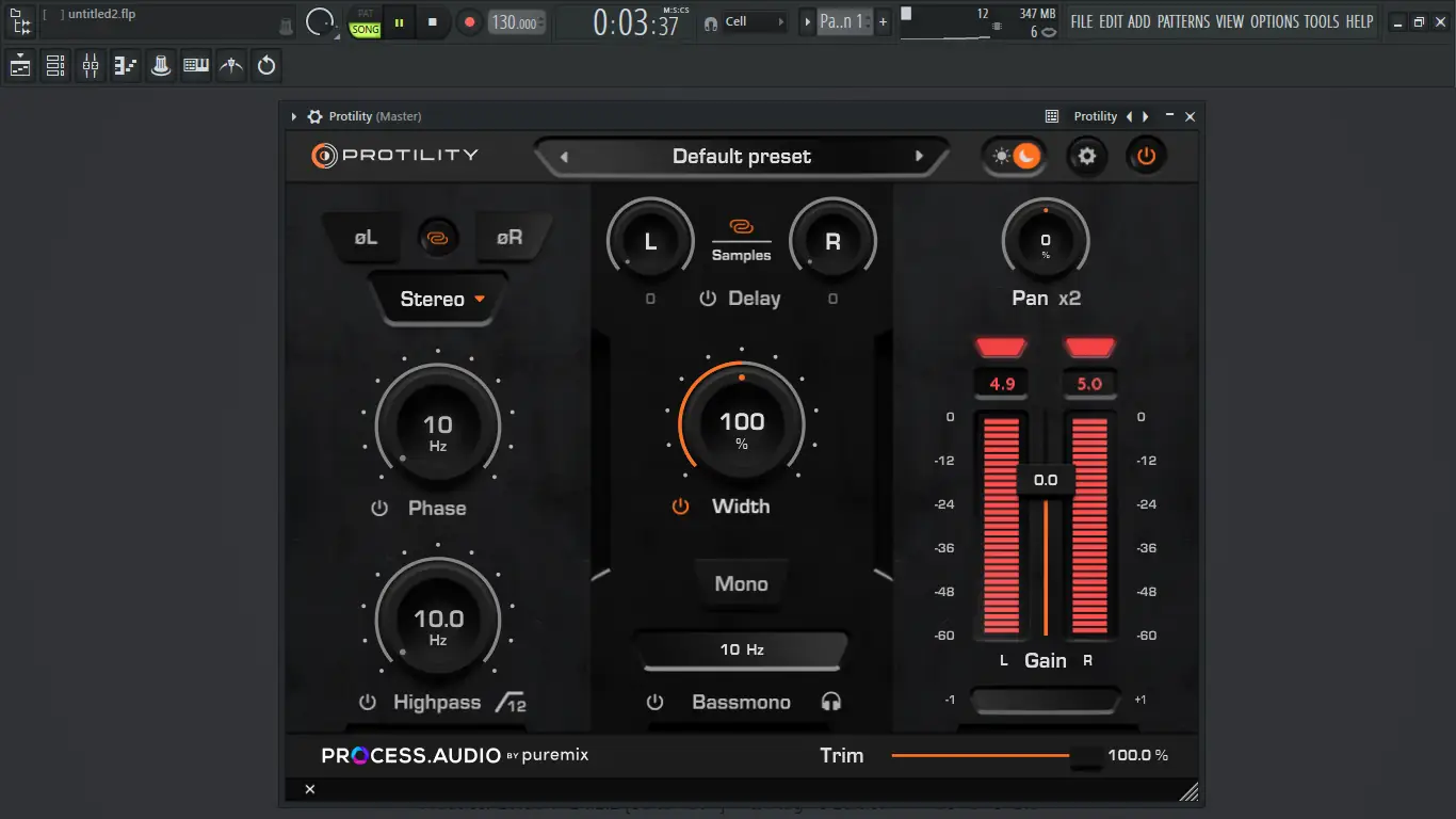 Использование Process Audio интуитивно благодаря продуманной структуре интерфейса. После загрузки плагина в DAW пользователь получает доступ к основным блокам: регулировке усиления, обрезке низких частот, панорамированию и анализу сигнала. Каждый параметр можно настроить вручную или отследить с помощью визуальных индикаторов, таких как пиковые метры и корреляционный дисплей. Работа с фазой осуществляется через переключение или поворот на заданное значение, а временные задержки корректируются с точностью до семпла. Тема интерфейса переключается между светлым и тёмным режимом, что снижает усталость глаз при длительной сессии.