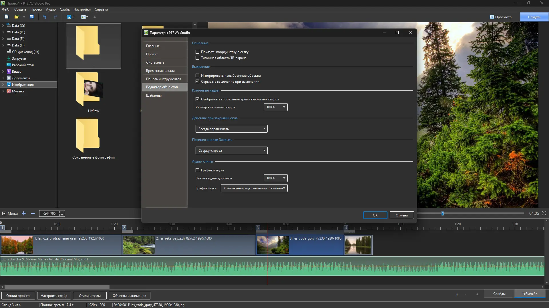 - Функция синхронизации длительности слайдов с треком фоновой музыки