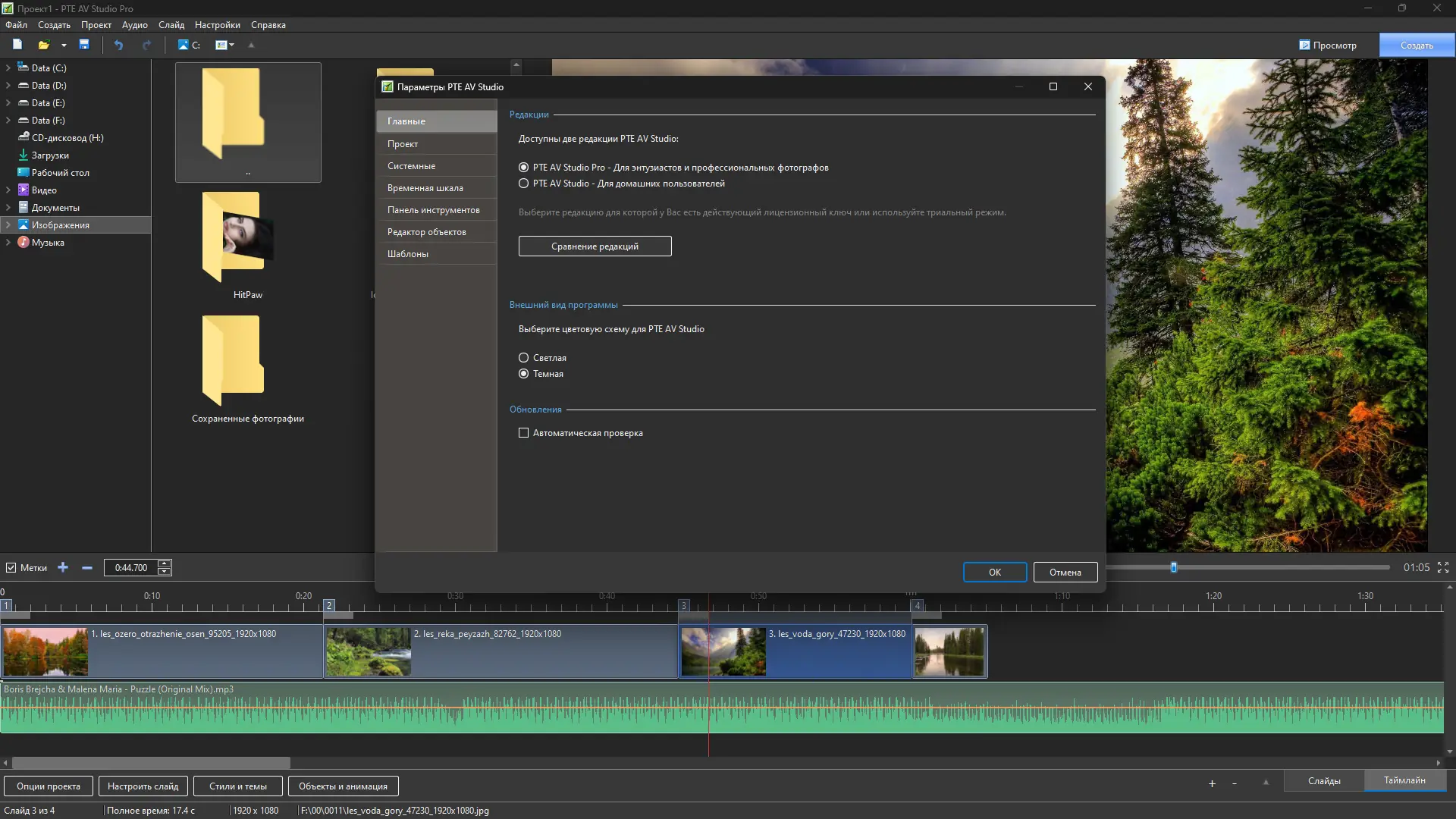 PTE AV Studio — мощный инструмент для создания слайд-шоу из фотографий с возможностью экспорта в виде исполняемых файлов, видео или DVD. Программа поддерживает добавление текстовых и звуковых комментариев, фоновой музыки, анимации и эффектов перехода. Идеально подходит для создания презентаций, поздравлений и готовых проектов для личного или профессионального использования.