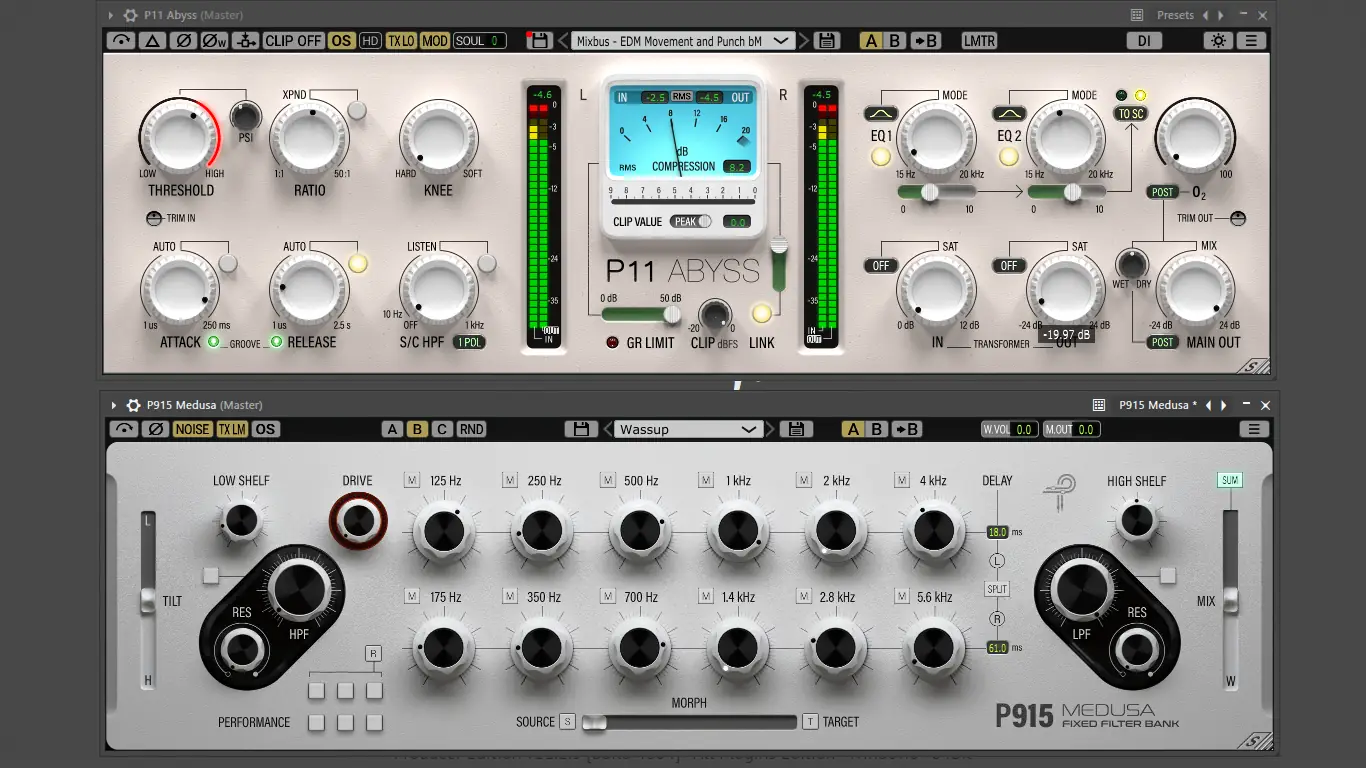 Использование пакета начинается с выбора подходящего плагина в зависимости от решаемой задачи. Например, P11 Abyss применяется как универсальный компрессор, способный адаптироваться под разные типы источников — от вокала до ударных или мастер-шины. P440 Sweet Spot используется на этапе мастеринга для тонкой коррекции частотного баланса, включая инфразвуковые диапазоны, что позволяет придать миксу глубину. P422 Fairuz подходит для эквализации инструментов, сохраняя их акустическую целостность даже при сильных коррекциях. Работа с P565 Siren позволяет реализовывать динамические фильтрации, модулируемые по огибающей или стороннему сигналу, что открывает возможности для креативных решений. Все плагины интегрируются в стандартный рабочий процесс и не требуют специальных знаний для старта, хотя оставляют пространство для экспериментов.