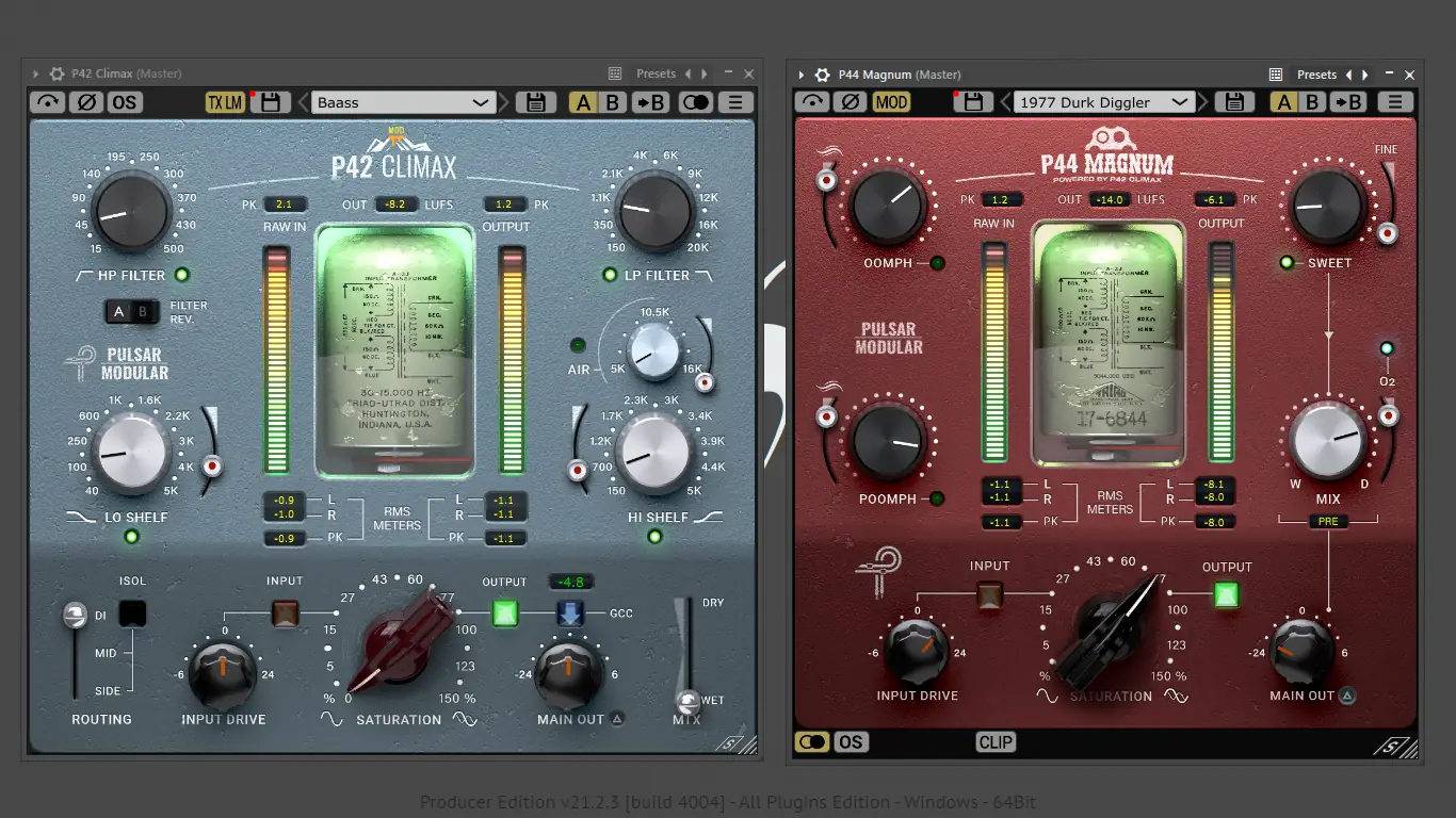 Полный набор эффектов Pulsar Modular Complete Effects Bundle объединяет передовые аудиоплагины для профессионального микширования, мастеринга и обработки звука. Коллекция включает уникальные процессоры, каждый из которых разработан с акцентом на точность, музыкальность и гибкость. Решения подходят как для отдельных треков, так и для групповых шин и финального выведения композиций. Инструменты сочетают в себе характеристики аппаратных устройств и современные цифровые возможности, обеспечивая высокое качество без типичных компромиссов.