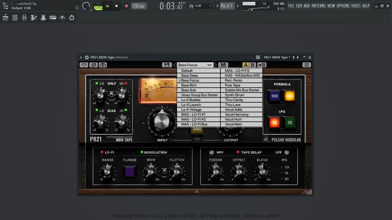 Pulsar представляет собой цифровой плагин, моделирующий поведение аналогового ленточного рекордера Stephens 821 2”, использовавшегося в Producer’s Workshop. Этот аппарат стал основой для создания P821 MDN Tape, точной эмуляции устройства Марка Дэниела Нельсона, чья студийная практика оставила след в истории звукозаписи. Программа передаёт не просто тембр ленты, а её физическое поведение — шипение, модуляцию, динамические колебания и реакцию на изменения смещения.