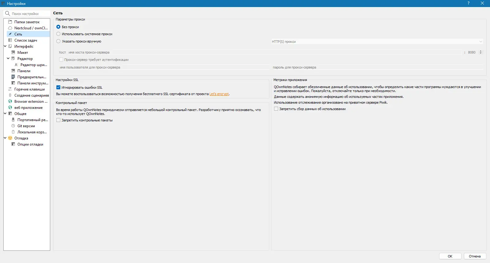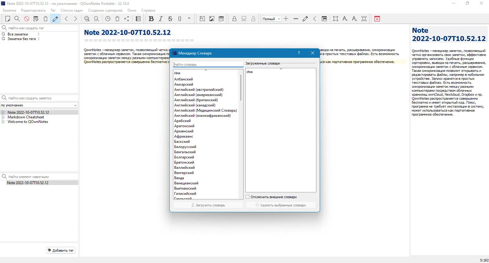 Работа с QOwnNotes