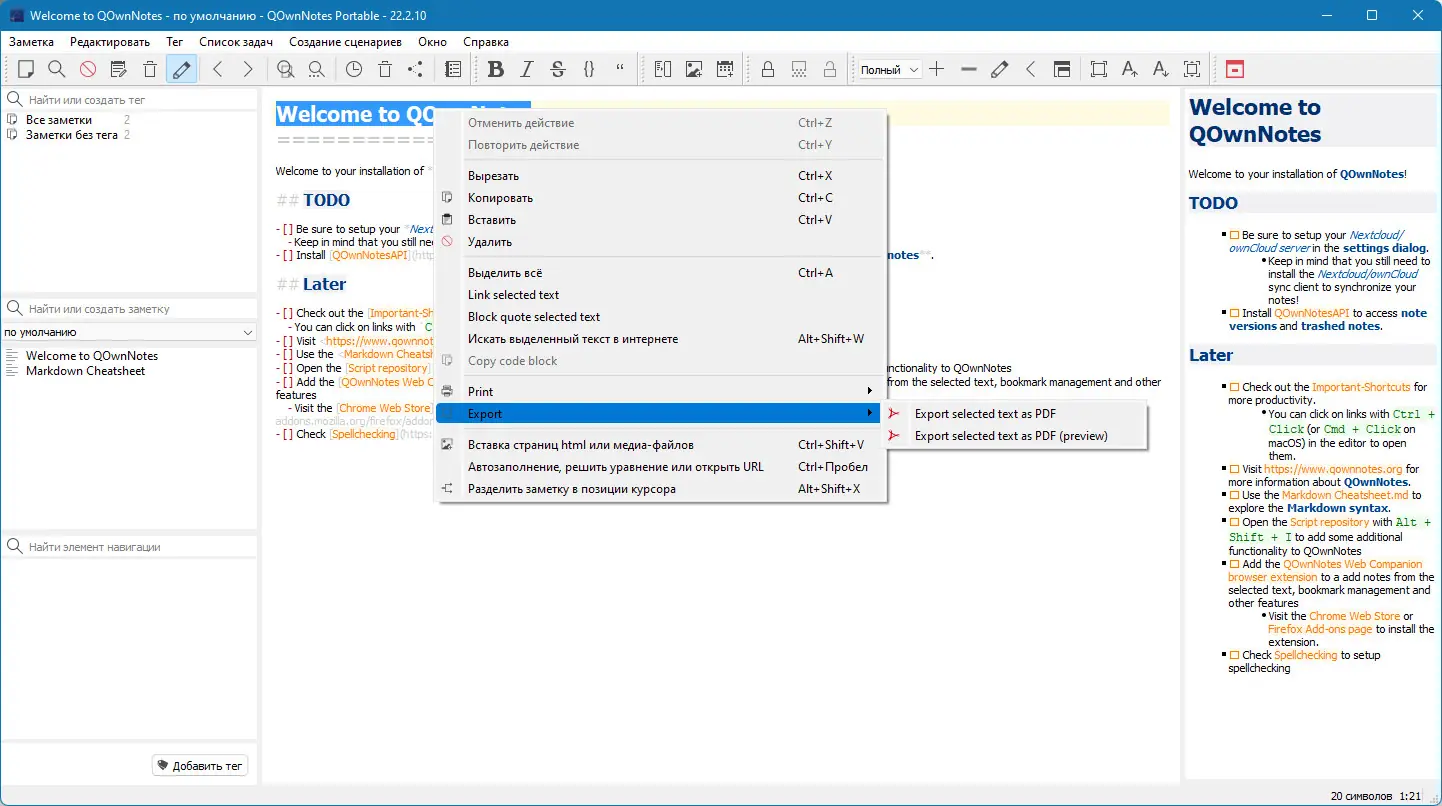 Работа с QOwnNotes